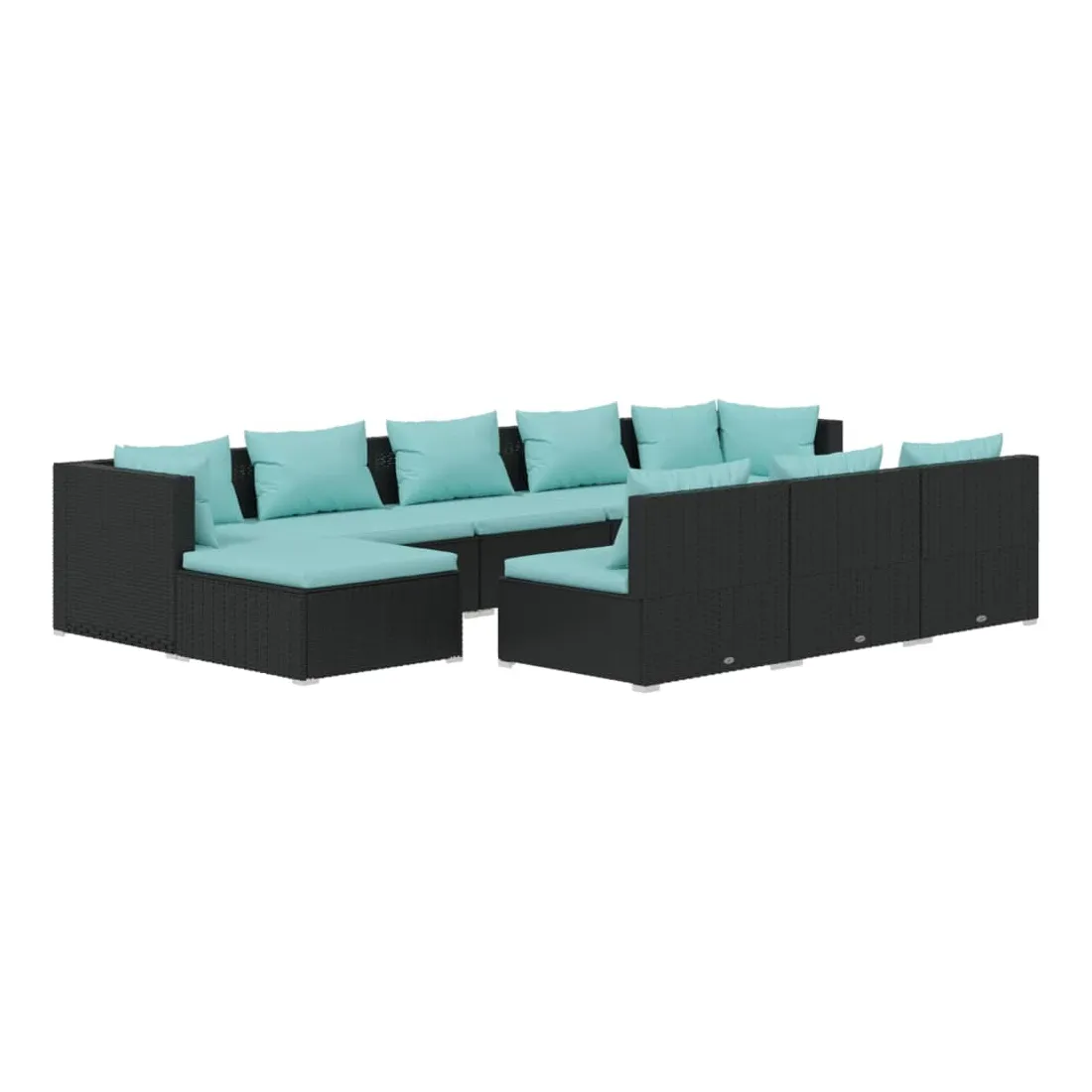 Salon de jardin 10 pcs avec coussins Noir Résine tressée