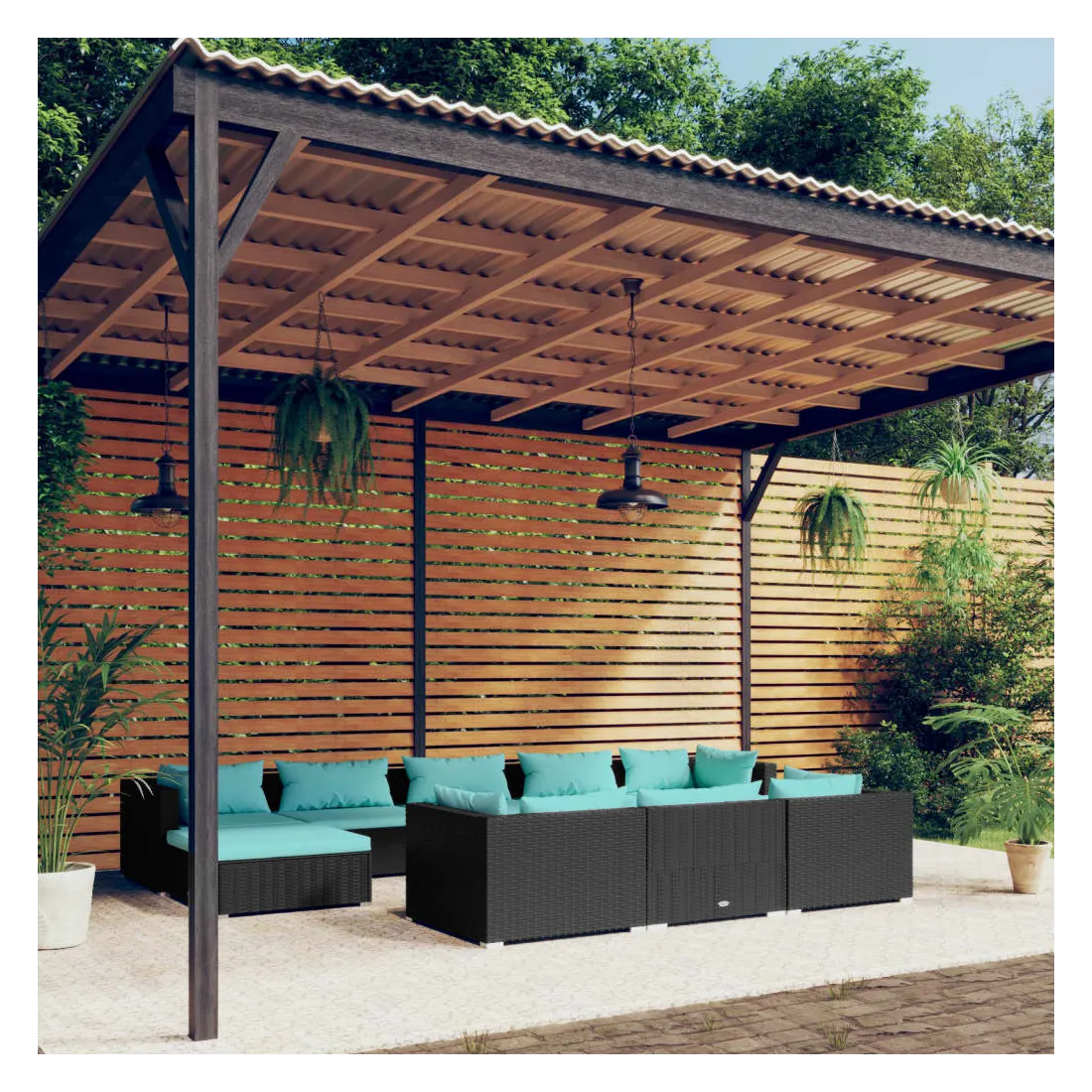 Détendez-vous et profitez de vos loisirs avec cet ensemble de meubles de jardin très tendance ! Il est conçu pour répondre à une variété de vos différents besoins. Cadre robuste : cet ensemble de meubles de patio est doté d'un cadre solide en acier enduit de poudre et de pieds en plastique chromé, ce qui est très durable.Matériau haut de gamme : le canapé de jardin est conçu avec de la résine tressée résistante à l'eau, ce qui le rend facile à nettoyer, résistant à l'usure et adapté à une utilisation quotidienne à l'extérieur.Design modulaire : la conception modulaire permet de placer l'ensemble dans n'importe quelle disposition ou de le combiner avec d'autres segments modulaires pour répondre à vos besoins.Coussins et oreillers confortables : les coussins et les oreillers bien rembourrés et amovibles offrent un confort optimal pour votre assise en plein air. Remarque :Afin de prolonger la durée de vie de votre mobilier d'extérieur, nous vous recommandons de le protéger avec une housse imperméable.