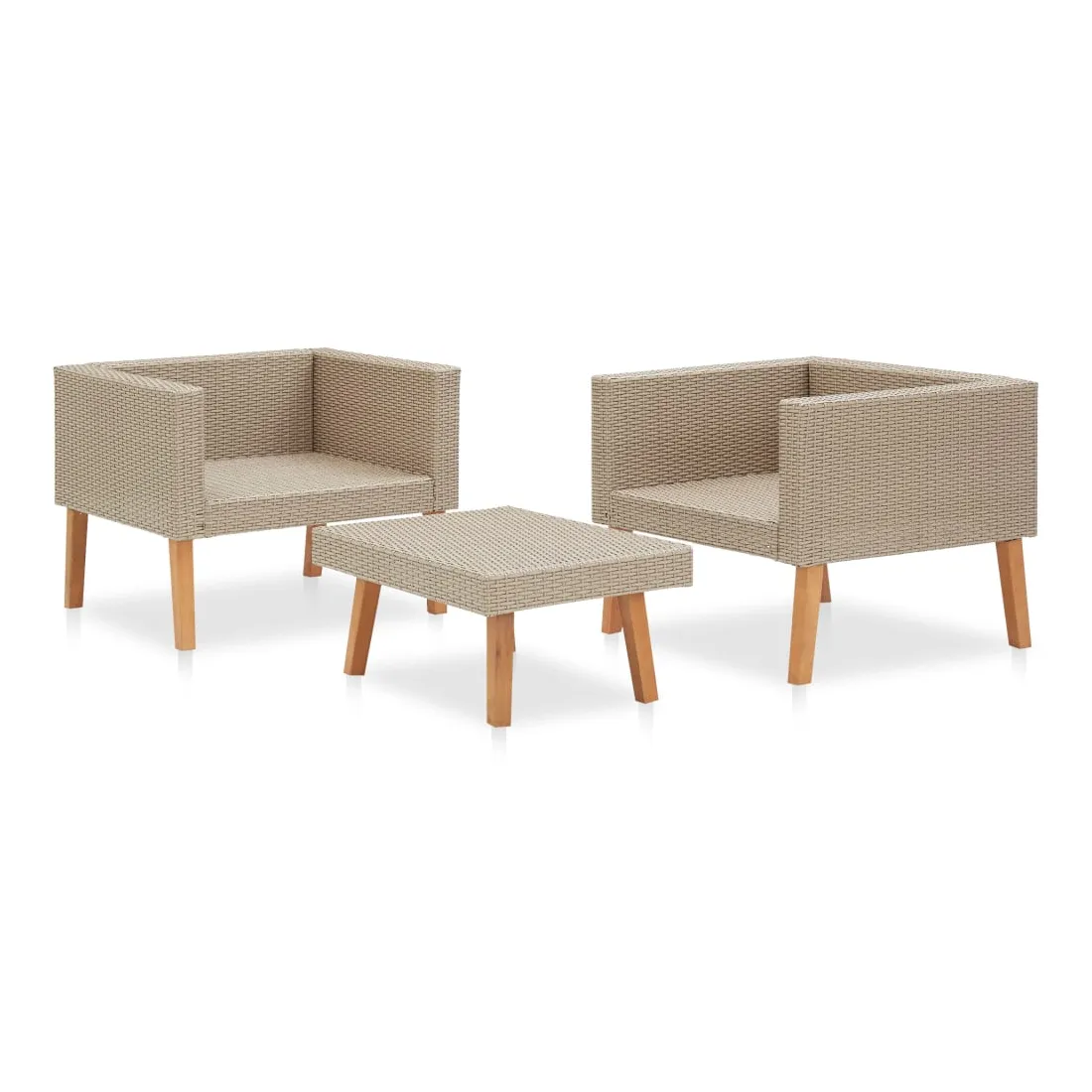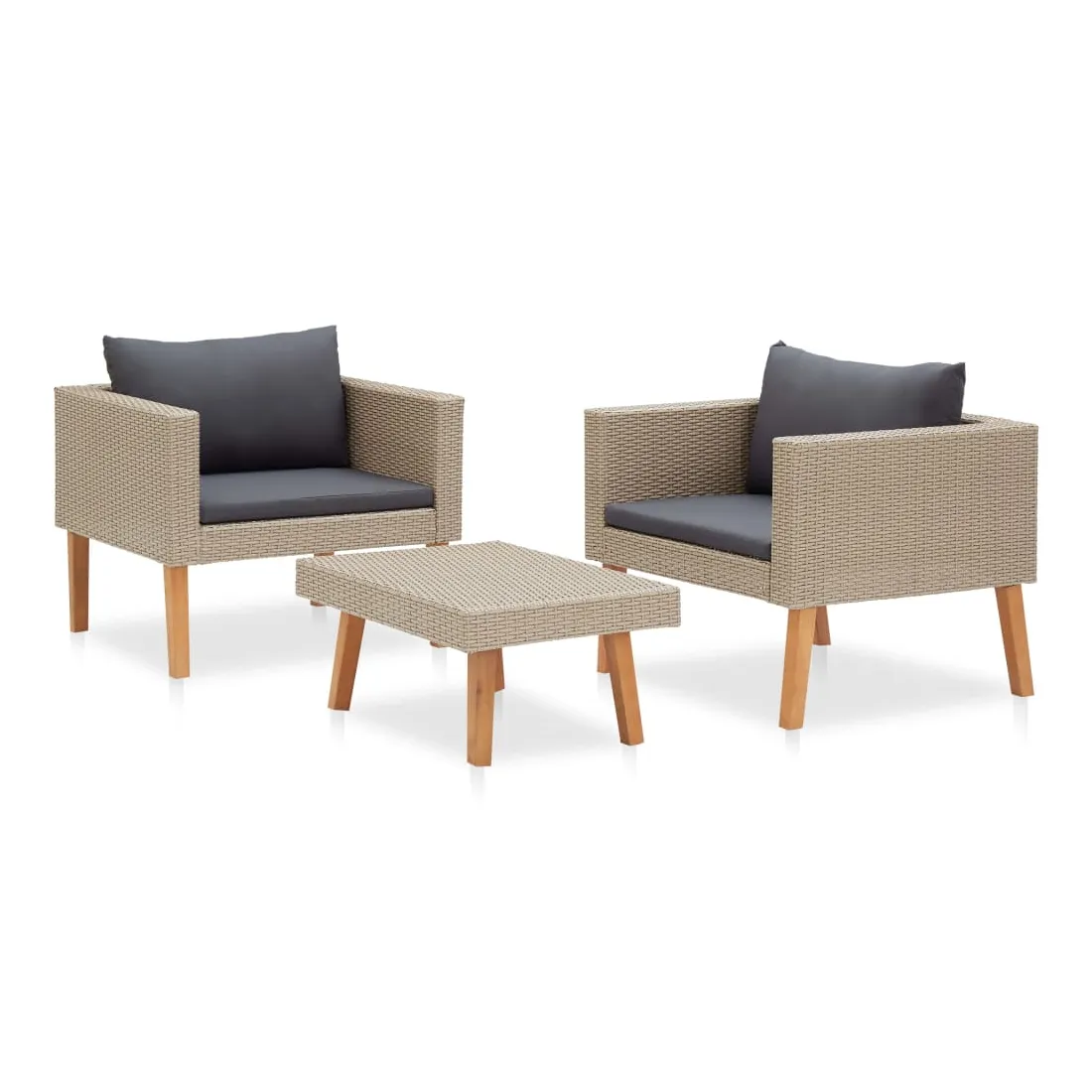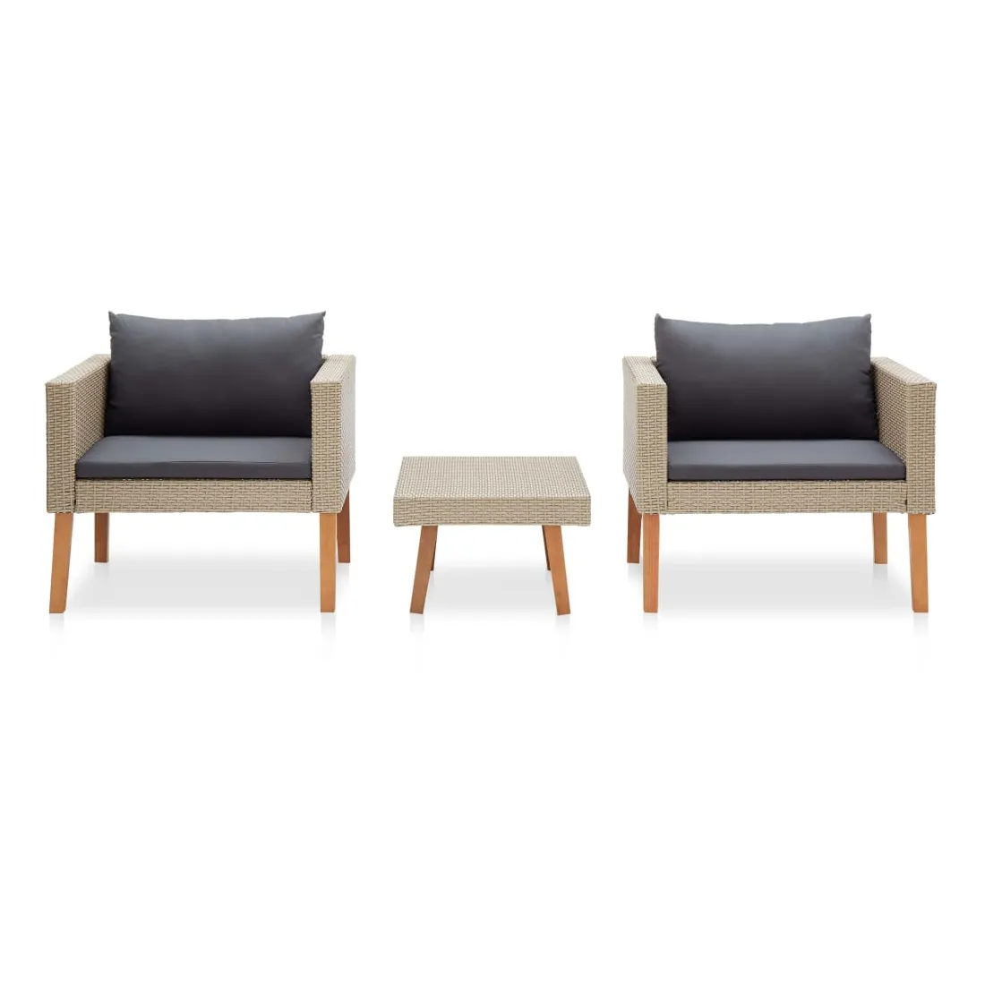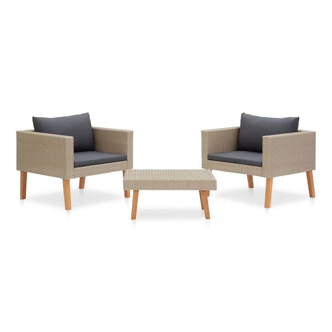 Salon de jardin 3 pcs avec coussins Résine tressée Beige