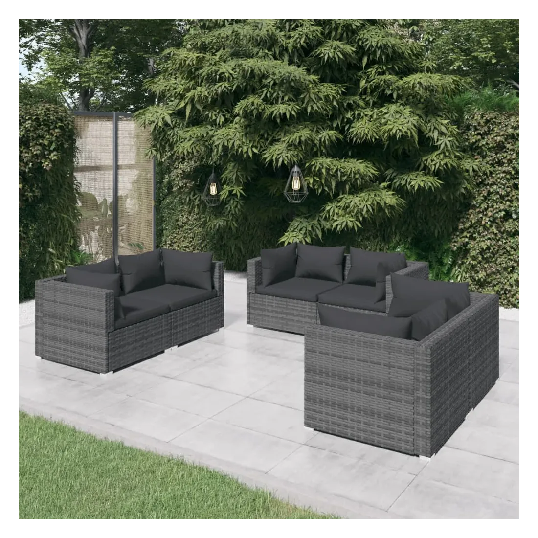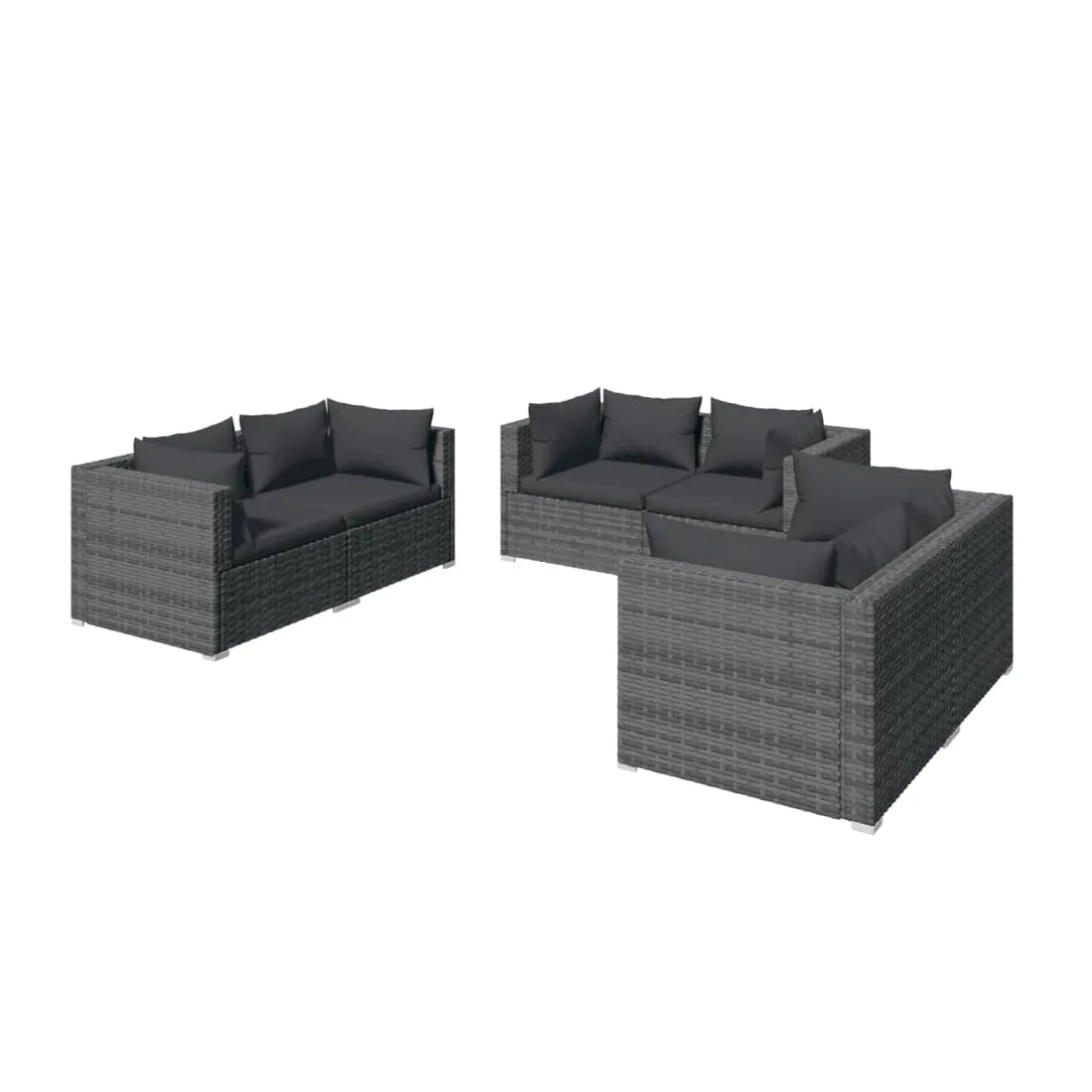 Salon de jardin 6 pcs avec coussins Résine tressée Gris