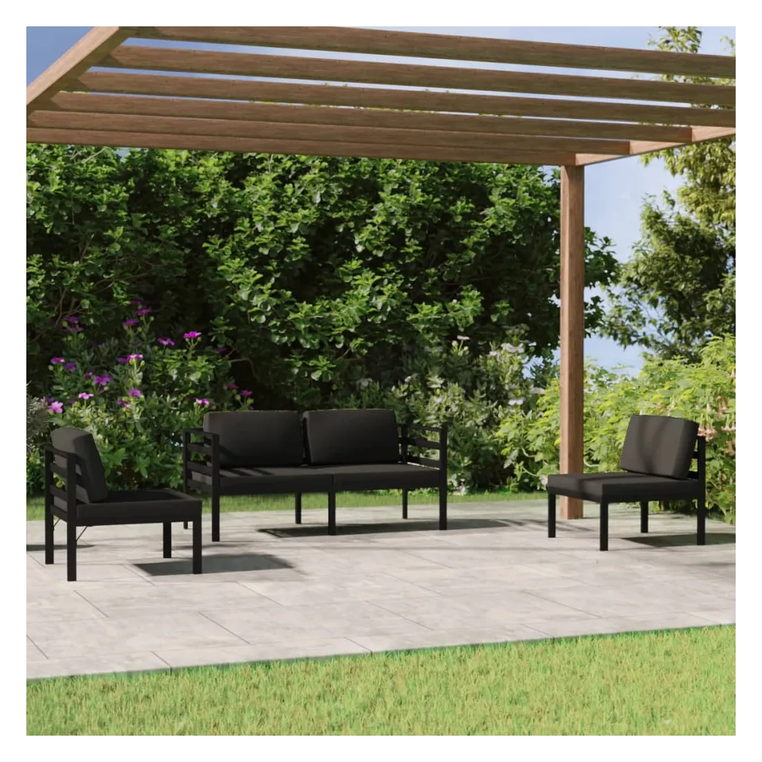 Salon de jardin 4 pcs avec coussins Aluminium Anthracite