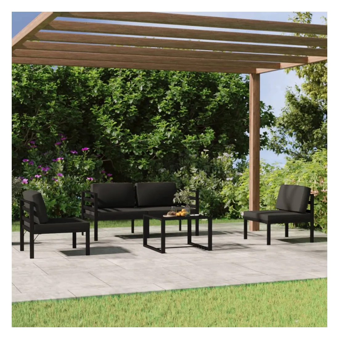 Salon de jardin 5 pcs avec coussins Aluminium Anthracite