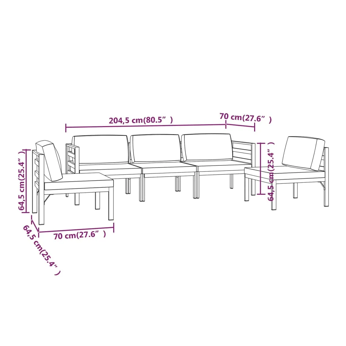• Dimensions du canapé central : 64,5 x 70 x 64,5 cm (l x P x H)