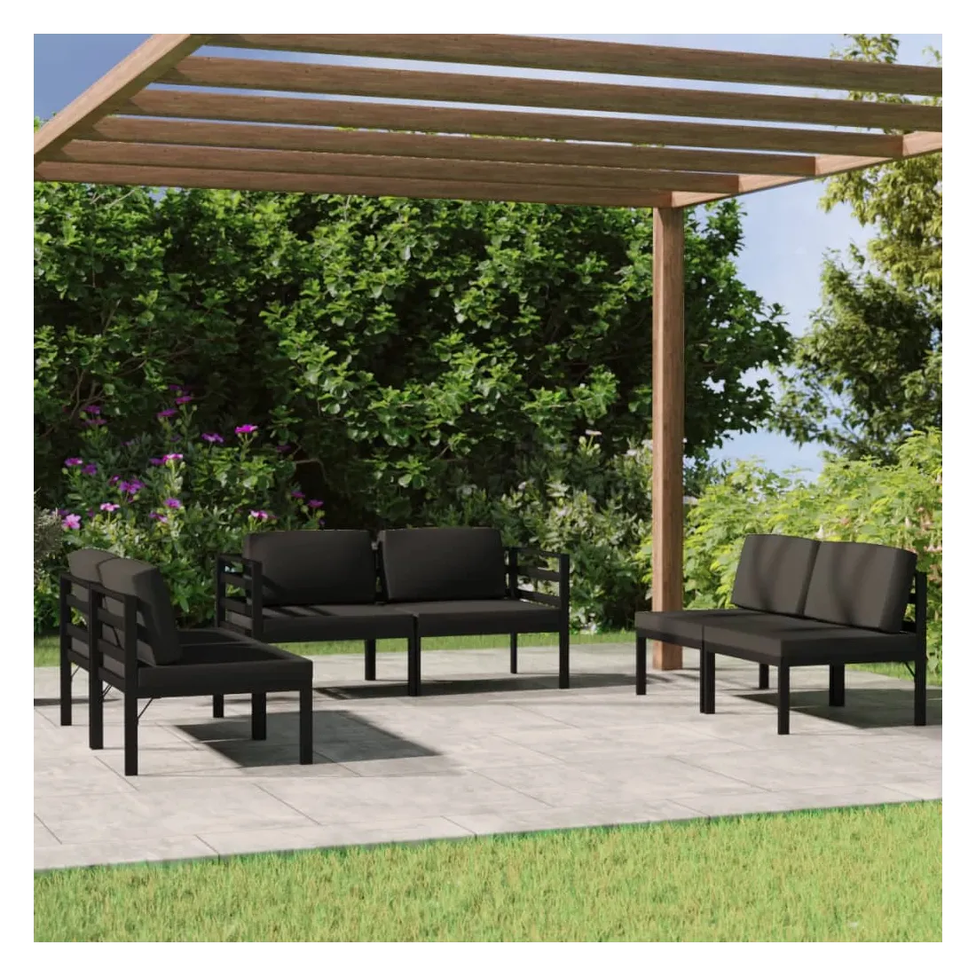Salon de jardin 6 pcs avec coussins Aluminium Anthracite