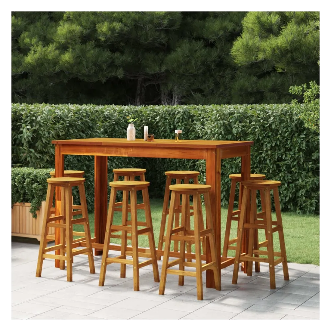 Ensemble de bar de jardin 9 pcs Bois d'acacia solide