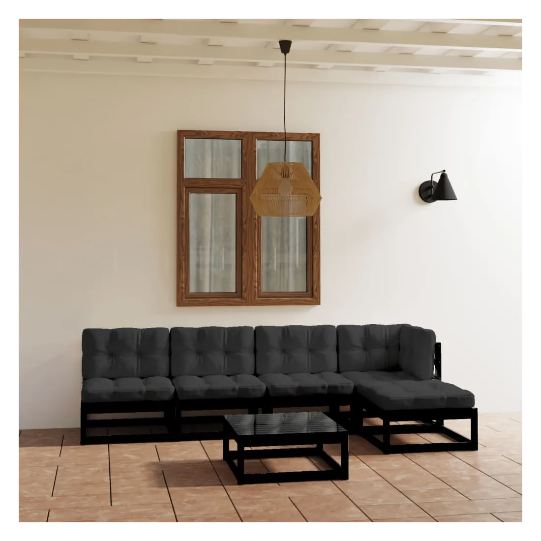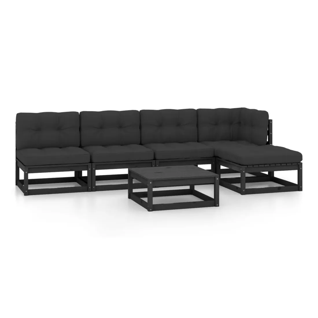 Salon de jardin 6 pcs avec coussins Bois de pin massif
