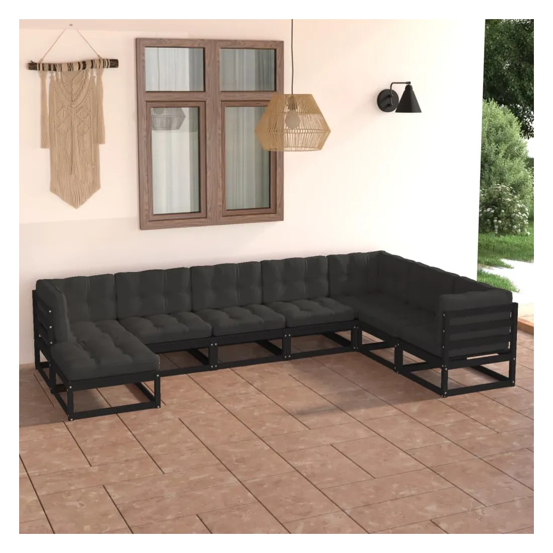 Salon de jardin 8 pcs avec coussins Bois de pin massif