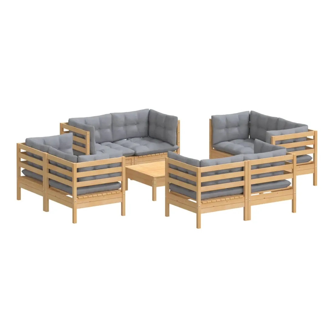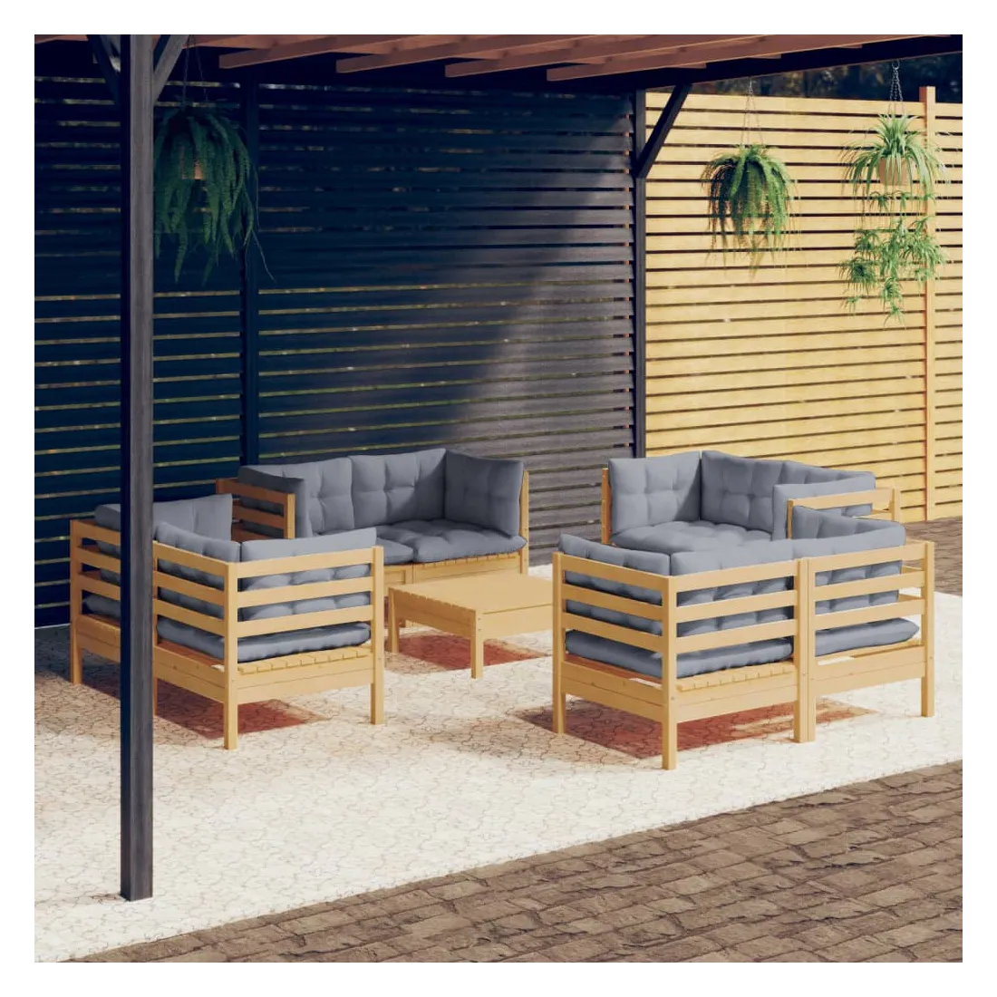 Ce salon de jardin est un excellent choix pour vous détendre et profiter du beau temps, faire une sieste ou discuter avec votre famille ou vos amis. Le salon de patio est fabriqué en bois de pin massif, ce qui le rend robuste et stable. Les coussins ajoutent un confort supplémentaire. Vous pouvez le combiner avec d’autres segments modulaires pour créer vos propres configurations de salon de jardin ! Remarque : afin de prolonger la durée de vie des meubles d'extérieur, nous vous recommandons de les protéger avec une housse imperméable.