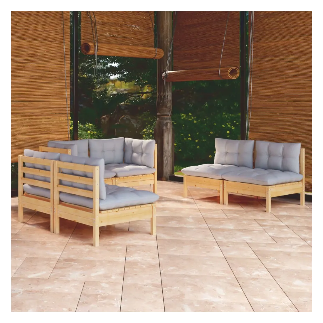 Ce salon de jardin est un excellent choix pour vous détendre et profiter du beau temps, faire une sieste ou discuter avec votre famille ou vos amis. Le salon de patio est fabriqué en bois de pin massif, ce qui le rend robuste et stable. Les coussins ajoutent un confort supplémentaire. Vous pouvez le combiner avec d’autres segments modulaires pour créer vos propres configurations de salon de jardin ! Remarque : afin de prolonger la durée de vie des meubles d'extérieur, nous vous recommandons de les protéger avec une housse imperméable.