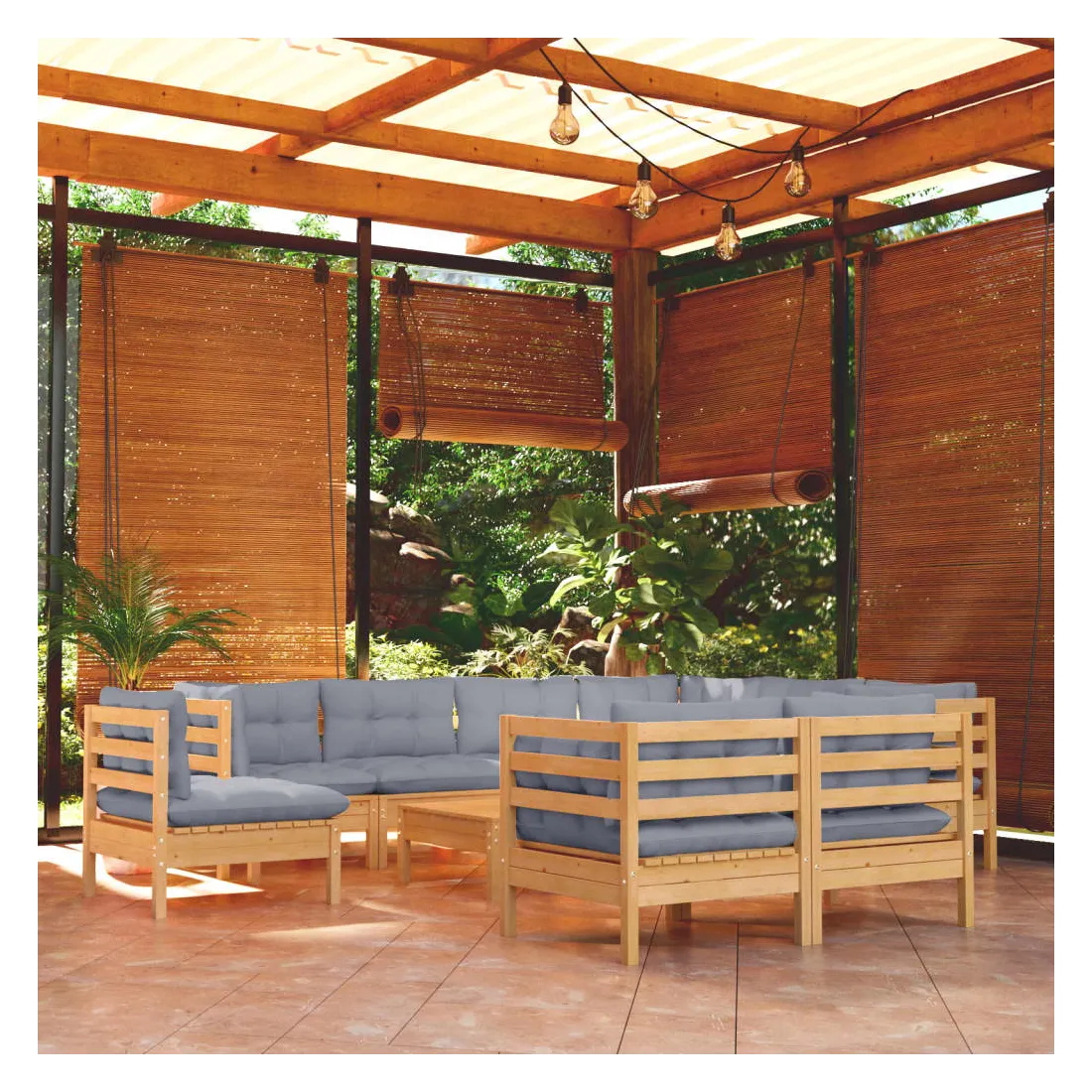 Ce salon de jardin est un excellent choix pour vous détendre et profiter du beau temps, faire une sieste ou discuter avec votre famille ou vos amis. Le salon de patio est fabriqué en bois de pin massif, ce qui le rend robuste et stable. Les coussins ajoutent un confort supplémentaire. Vous pouvez le combiner avec d’autres segments modulaires pour créer vos propres configurations de salon de jardin ! Remarque : afin de prolonger la durée de vie des meubles d'extérieur, nous vous recommandons de les protéger avec une housse imperméable.