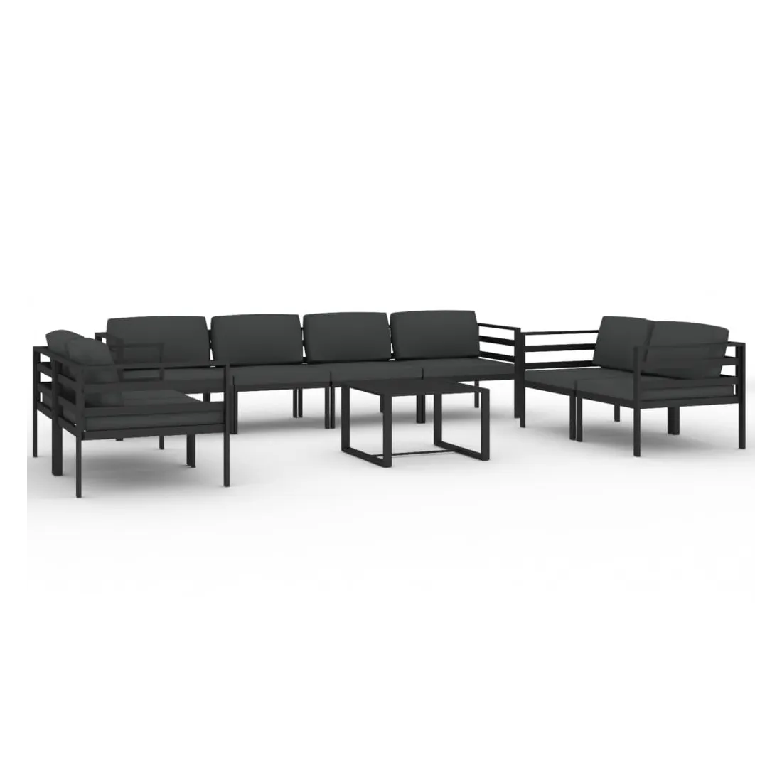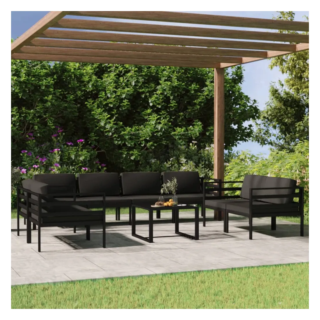 Salon de jardin 9 pcs avec coussins Aluminium Anthracite