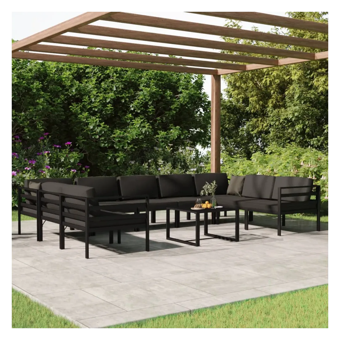 Salon de jardin 10 pcs avec coussins Aluminium Anthracite