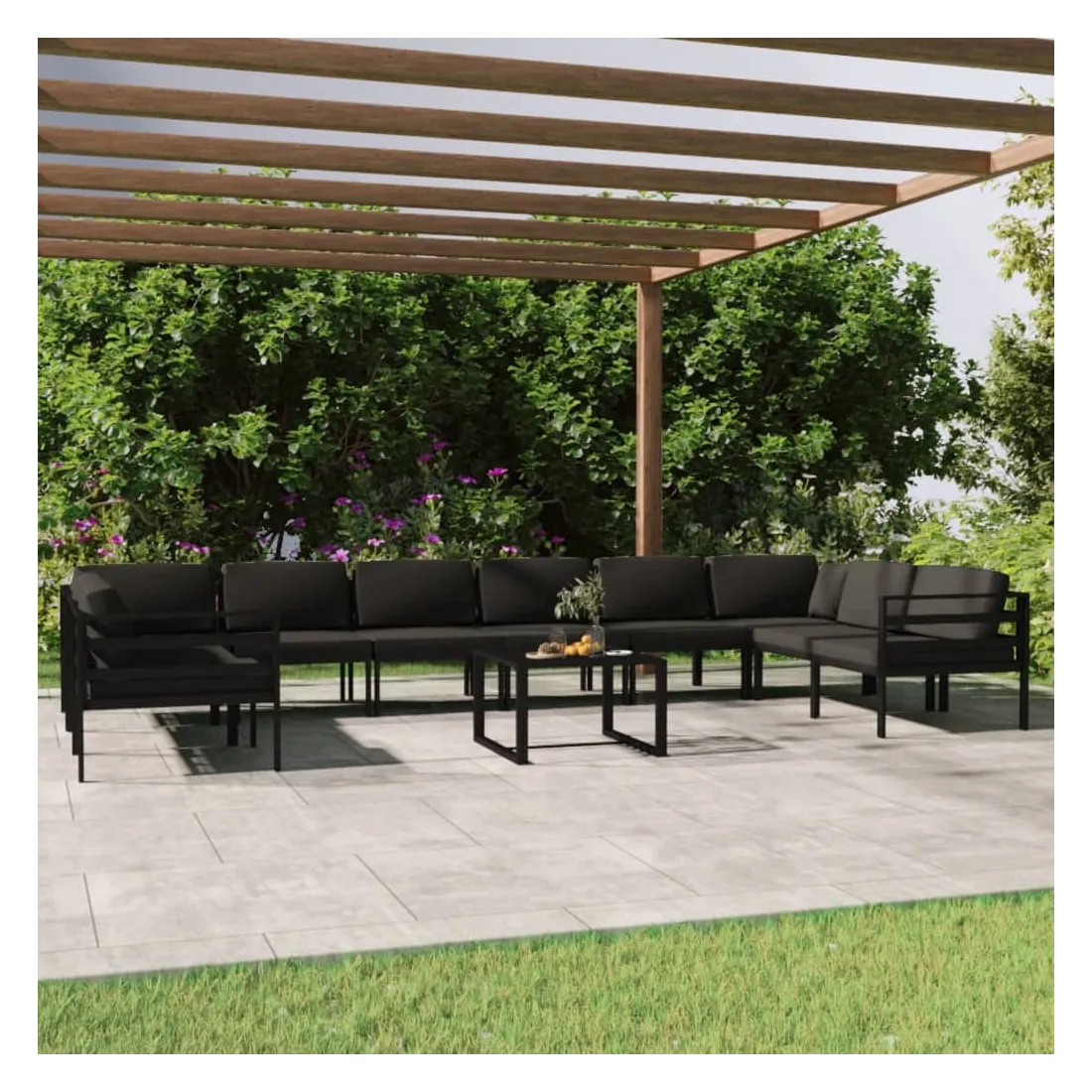 Salon de jardin 11 pcs avec coussins Aluminium Anthracite