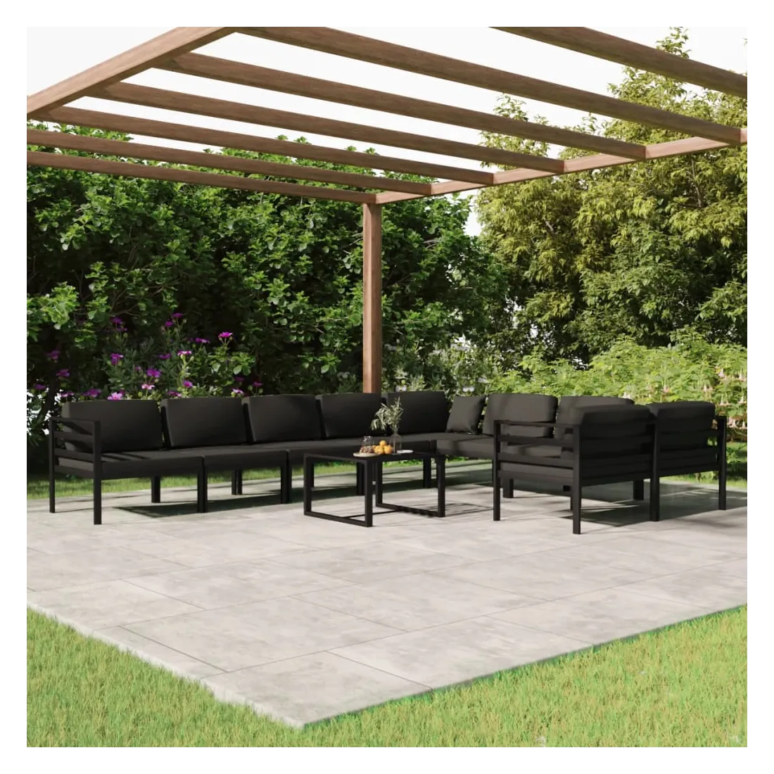 Salon de jardin 10 pcs avec coussins Aluminium Anthracite