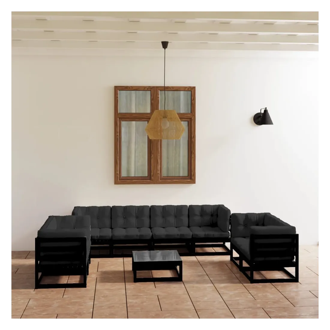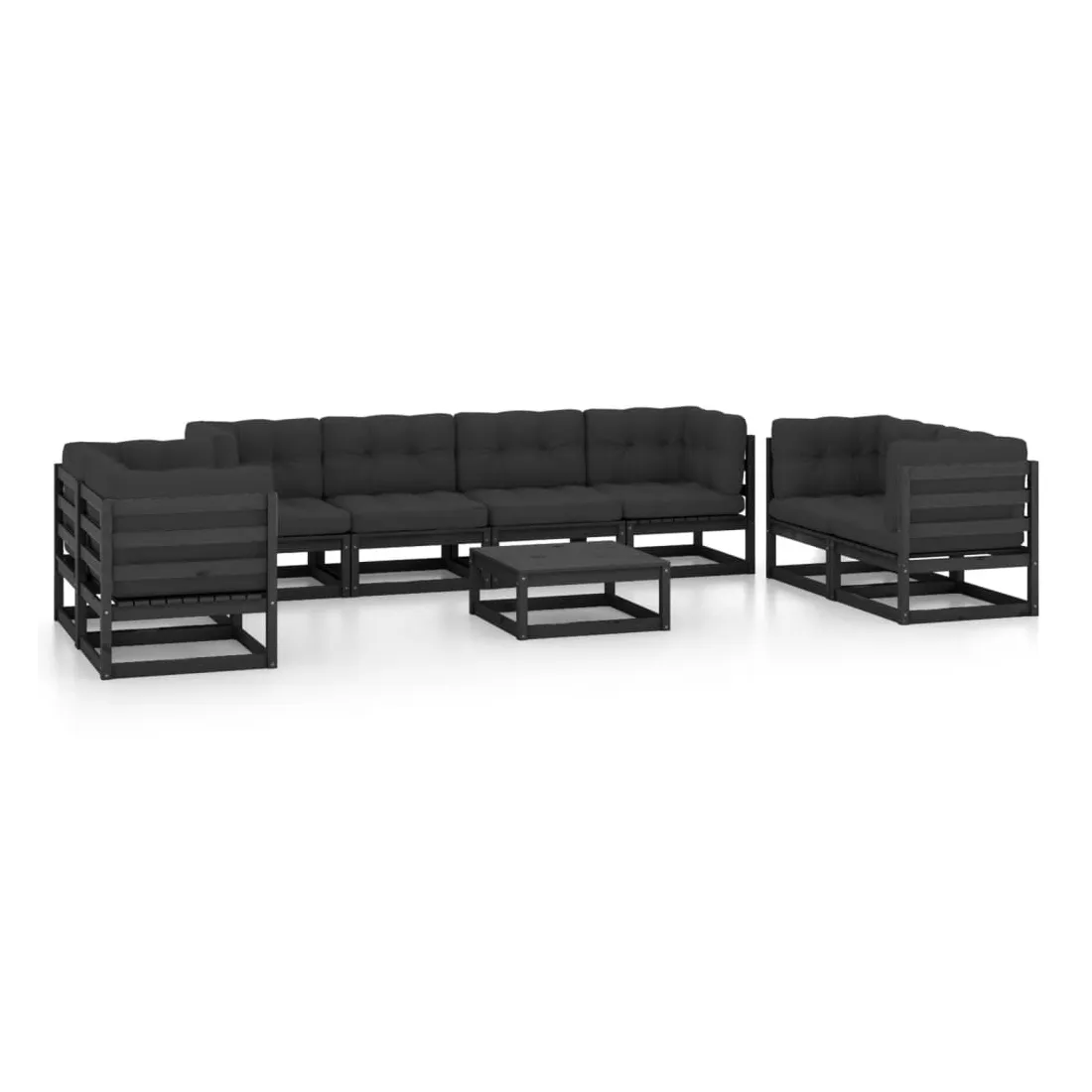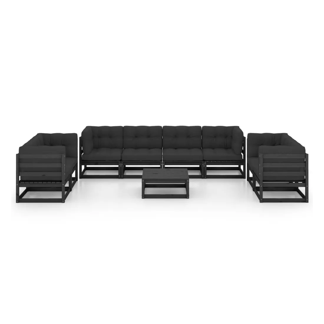 Salon de jardin 9 pcs avec coussins Bois de pin massif
