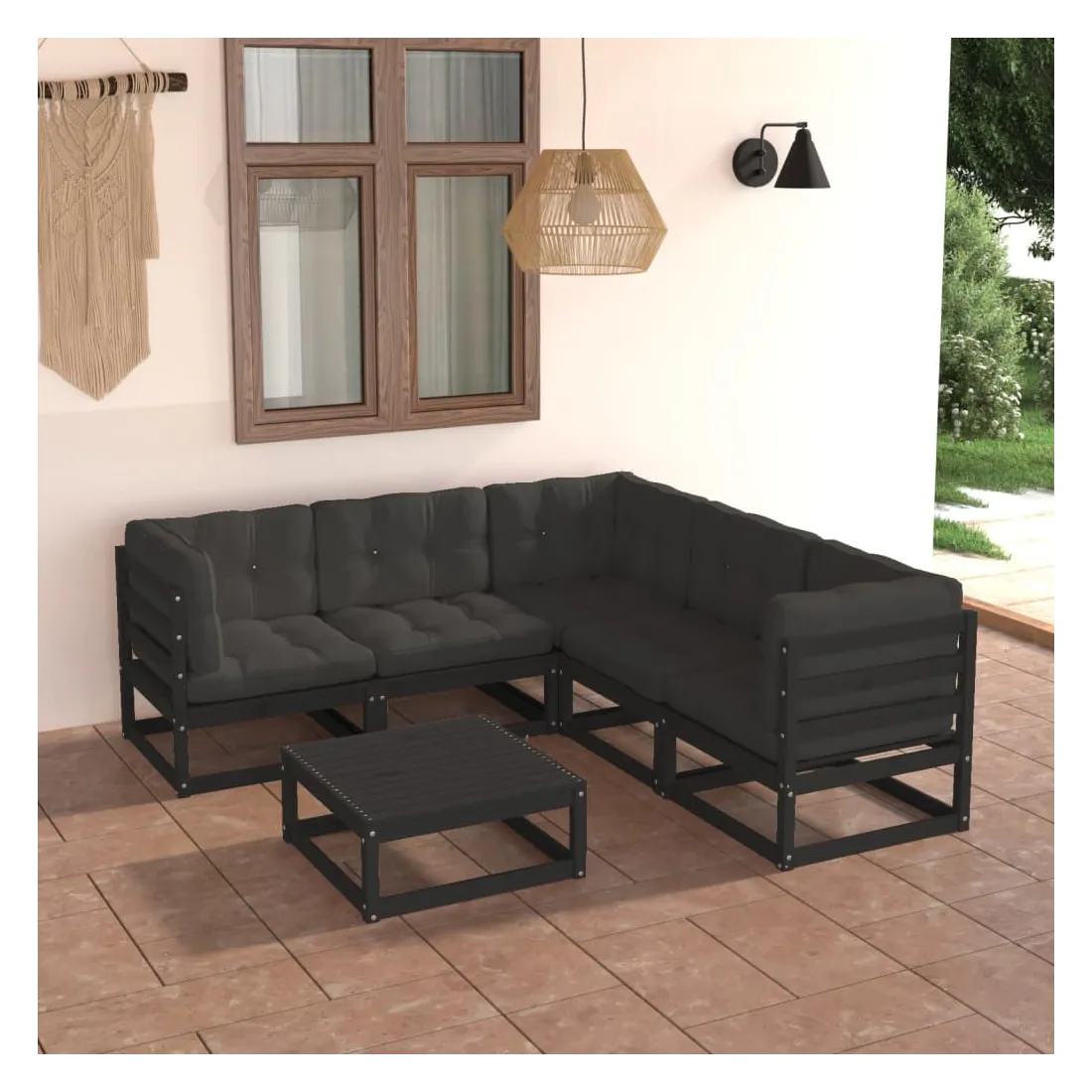 Ce salon de jardin est un excellent choix pour vous détendre et profiter du beau temps, faire une sieste ou discuter avec votre famille ou vos amis. L’ensemble de salon de jardin est fabriqué en bois de pin massif, ce qui le rend robuste et stable. Les coussins ajoutent un confort supplémentaire. Vous pouvez le combiner avec d’autres segments modulaires pour créer vos propres configurations de salon de jardin ! Remarque : afin de prolonger la durée de vie des meubles d'extérieur, nous vous recommandons de les protéger avec une housse imperméable.