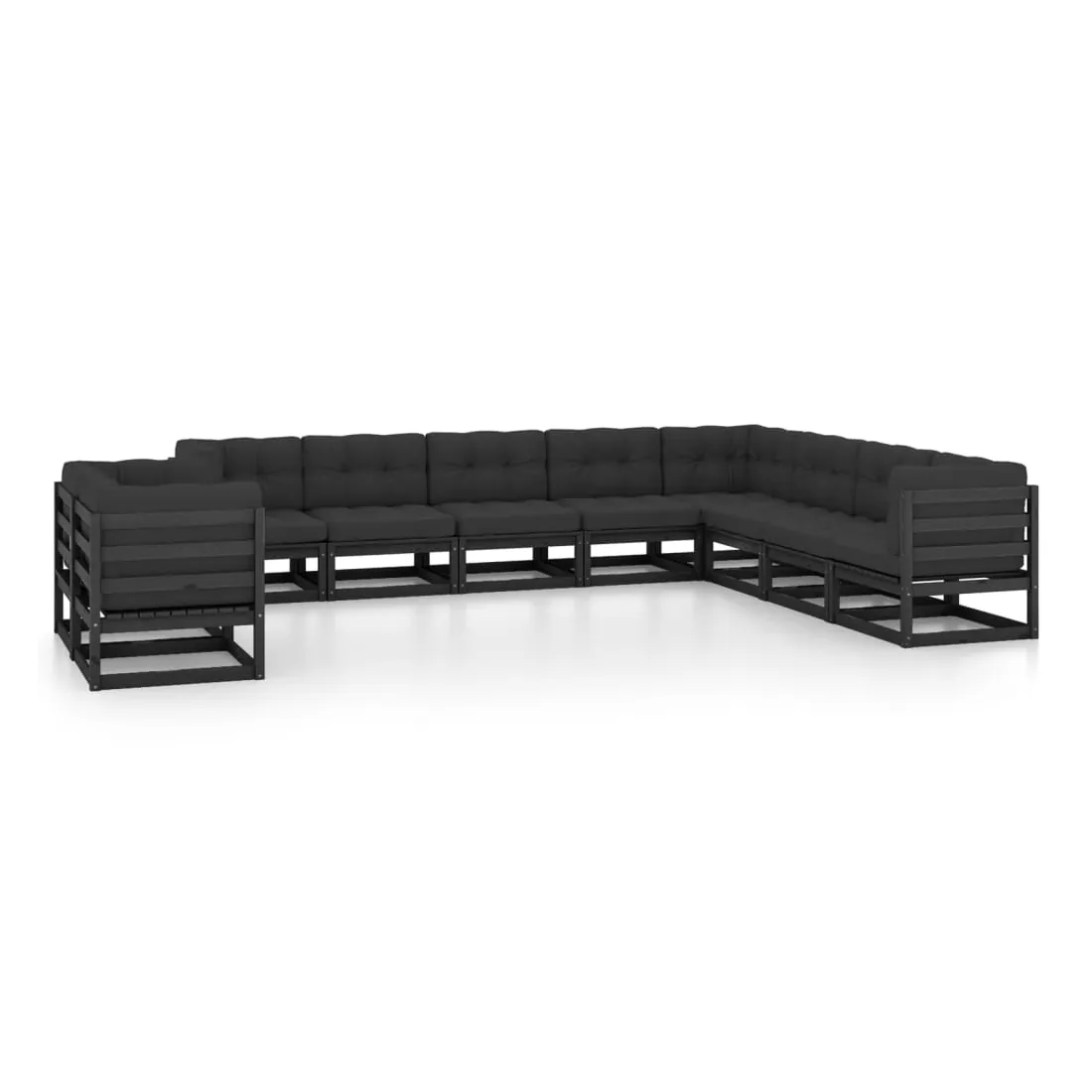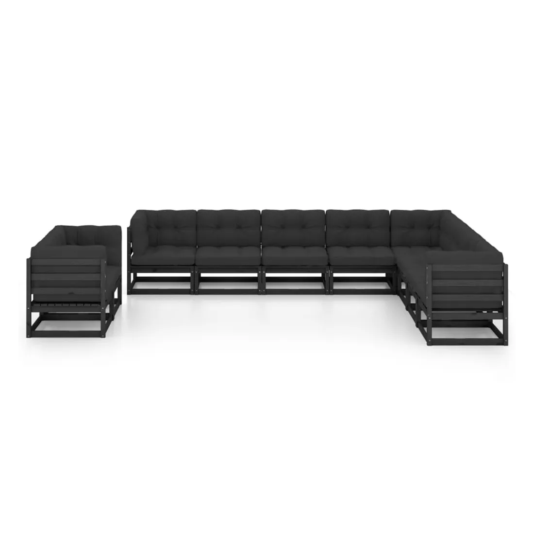 Salon de jardin 10 pcs avec coussins Noir Bois de pin massif
