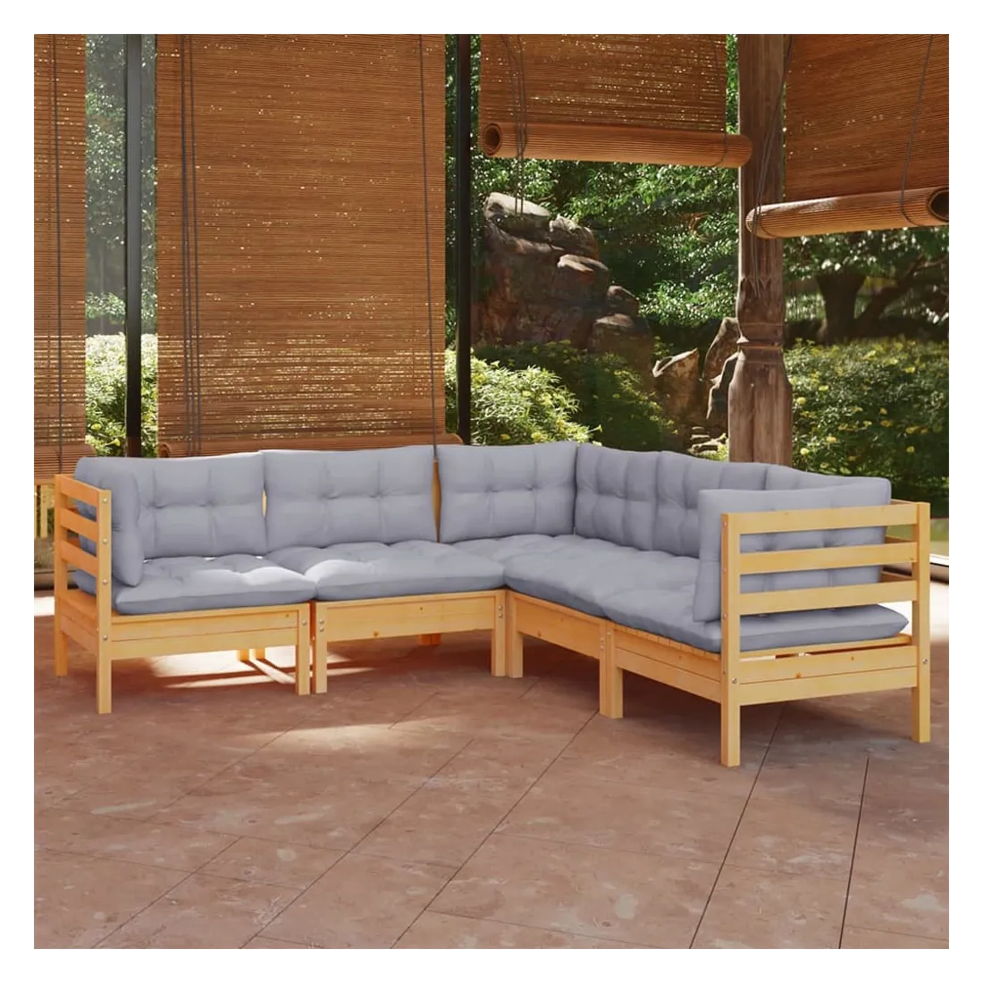 Ce salon de jardin est un excellent choix pour vous détendre et profiter du beau temps, faire une sieste ou discuter avec votre famille ou vos amis. Le salon de patio est fabriqué en bois de pin massif, ce qui le rend robuste et stable. Les coussins ajoutent un confort supplémentaire. Vous pouvez le combiner avec d’autres segments modulaires pour créer vos propres configurations de salon de jardin ! Remarque : afin de prolonger la durée de vie des meubles d'extérieur, nous vous recommandons de les protéger avec une housse imperméable.