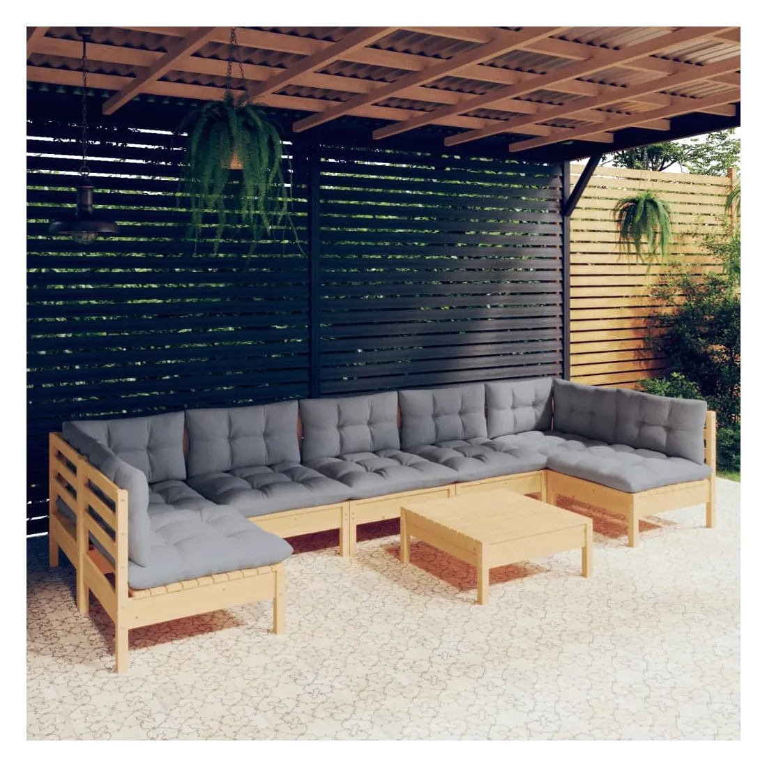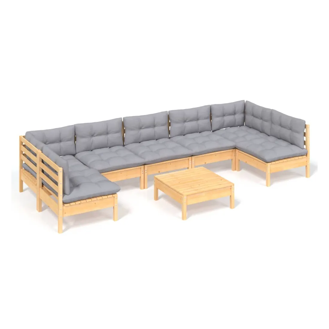 Ce salon de jardin est un excellent choix pour vous détendre et profiter du beau temps, faire une sieste ou discuter avec votre famille ou vos amis. Le salon de patio est fabriqué en bois de pin massif, ce qui le rend robuste et stable. Les coussins ajoutent un confort supplémentaire. Vous pouvez le combiner avec d’autres segments modulaires pour créer vos propres configurations de salon de jardin ! Remarque : afin de prolonger la durée de vie des meubles d'extérieur, nous vous recommandons de les protéger avec une housse imperméable.