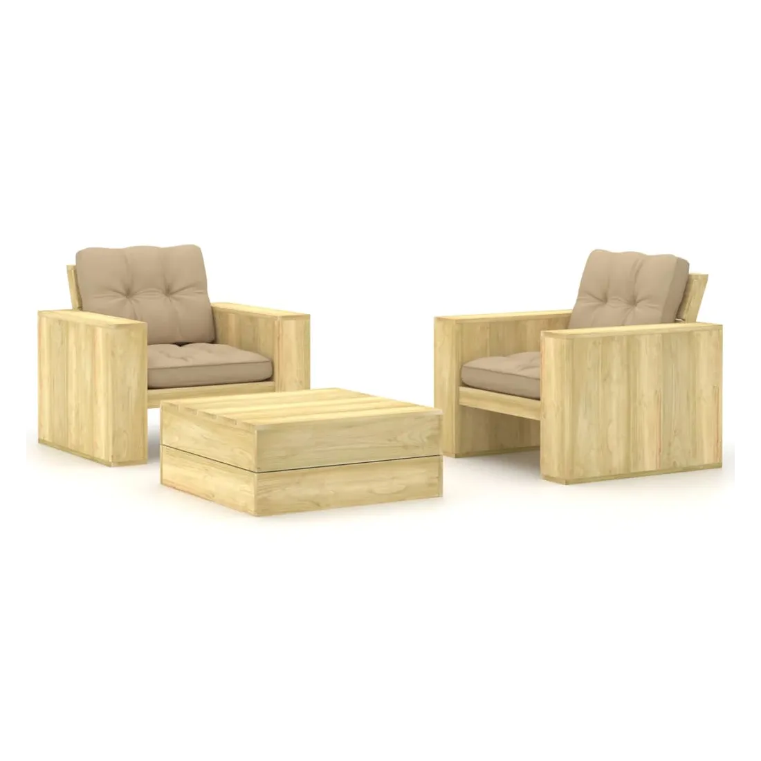 Salon de jardin 3 pcs avec coussins bois de pin imprégné