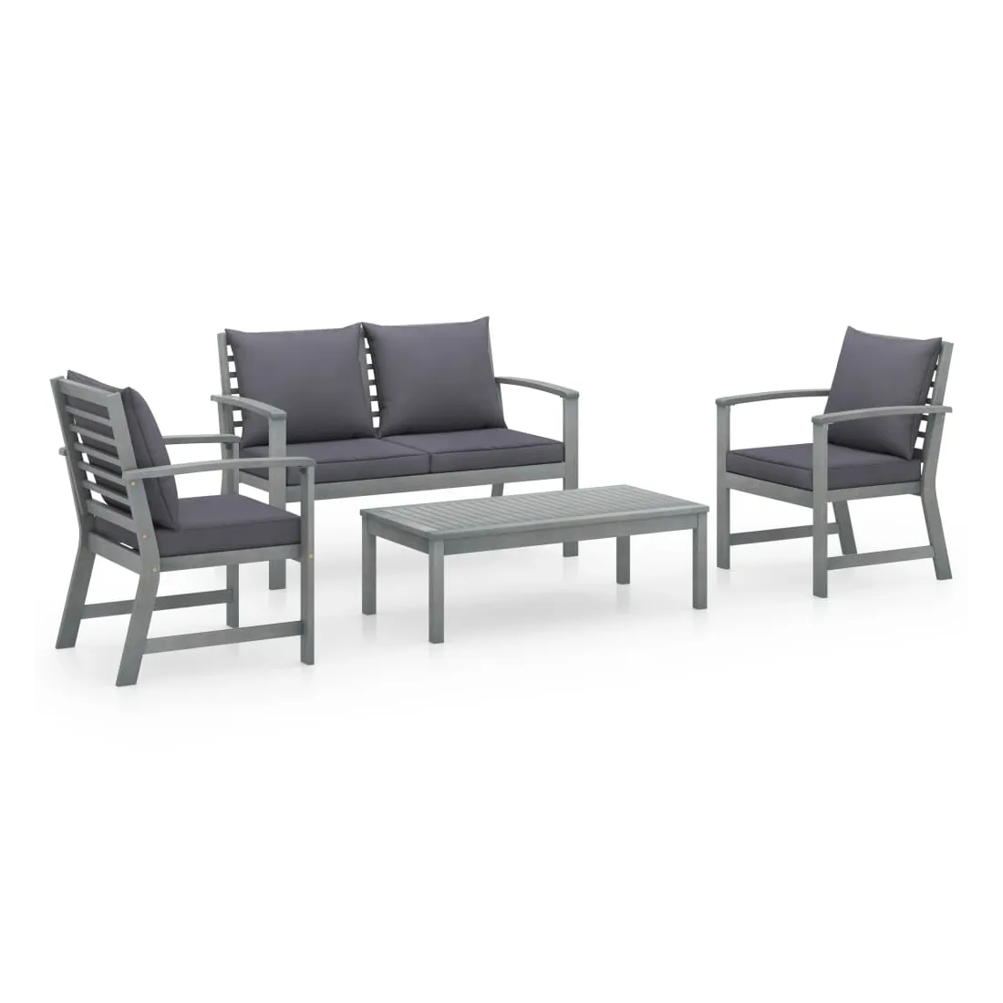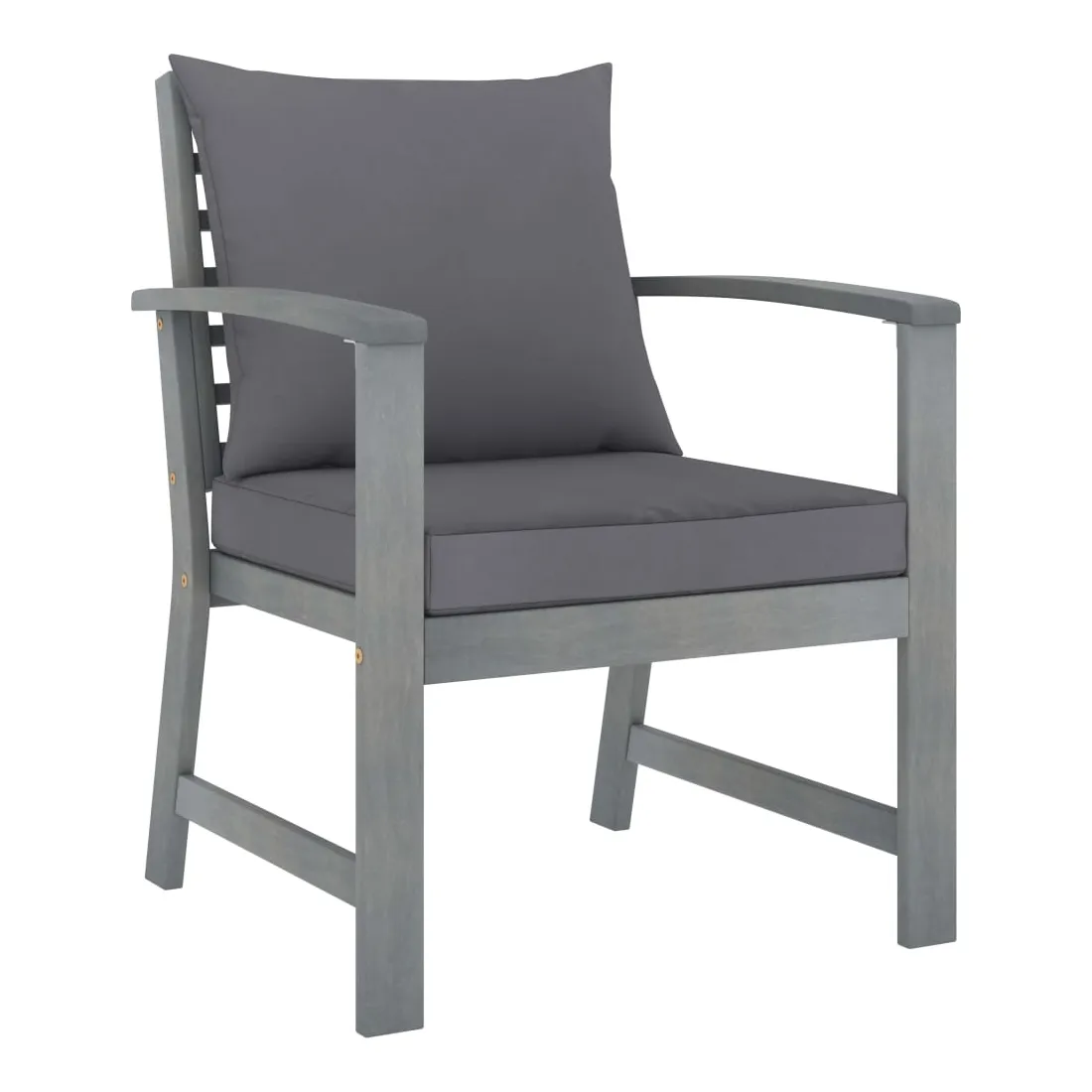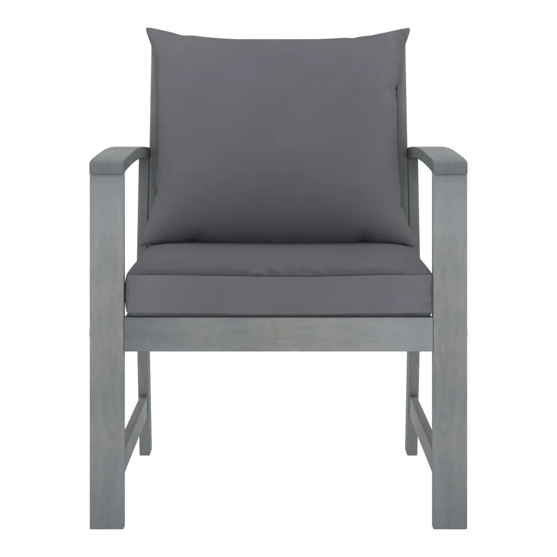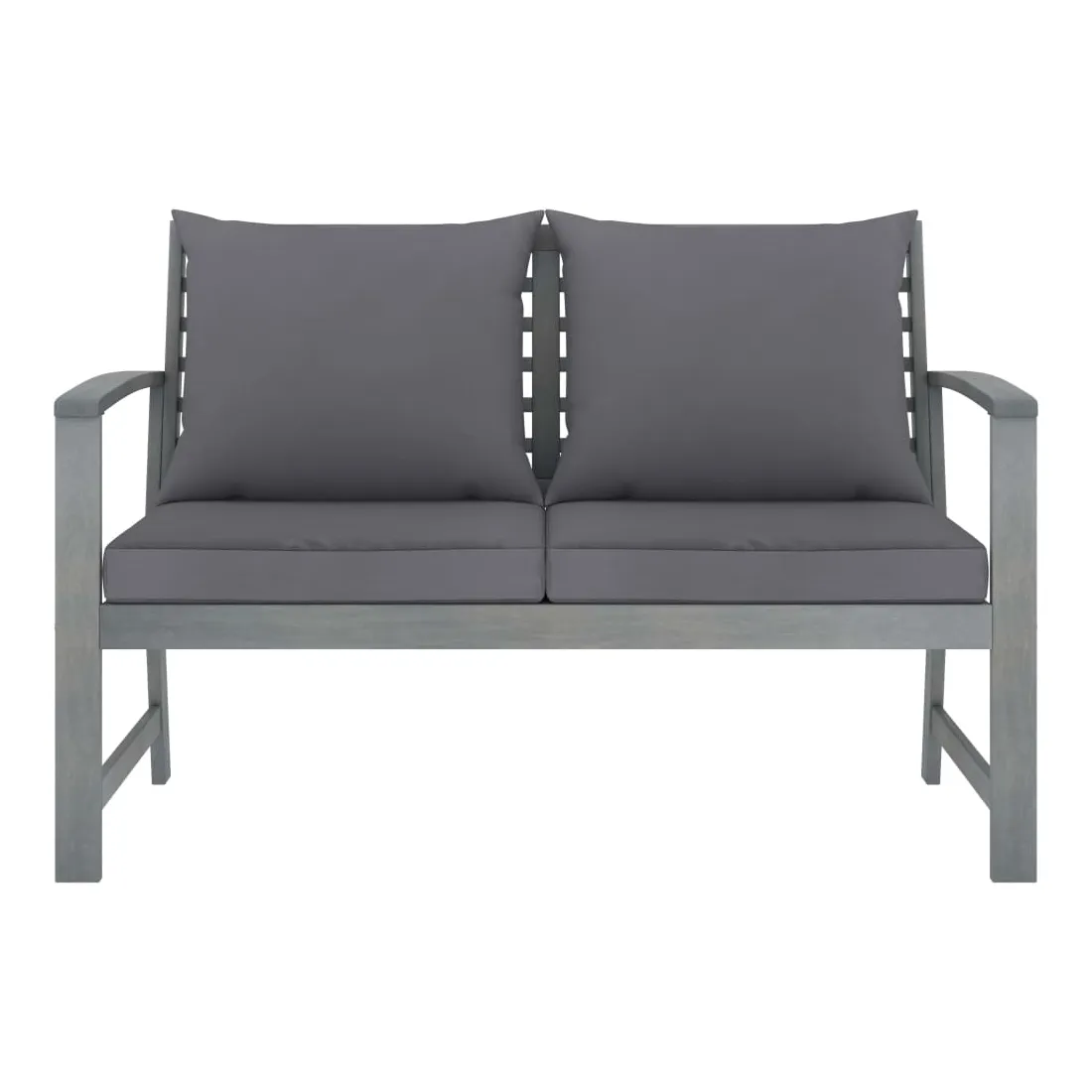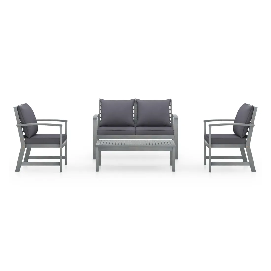 Ce salon de jardin en bois sera un choix parfait pour l'heure du café ou pour vous détendre. L'ensemble de mobilier dégage un charme rustique et sera un supplément attrayant à votre jardin, terrasse ou patio. Cet ensemble de mobilier de jardin est fabriqué en bois d’acacia massif de haute qualité, un bois dur tropical, qui est résistant aux intempéries et très durable. De plus, la livraison comprend des coussins de siège et de dossier avec rembourrage épais pour un confort suprême.