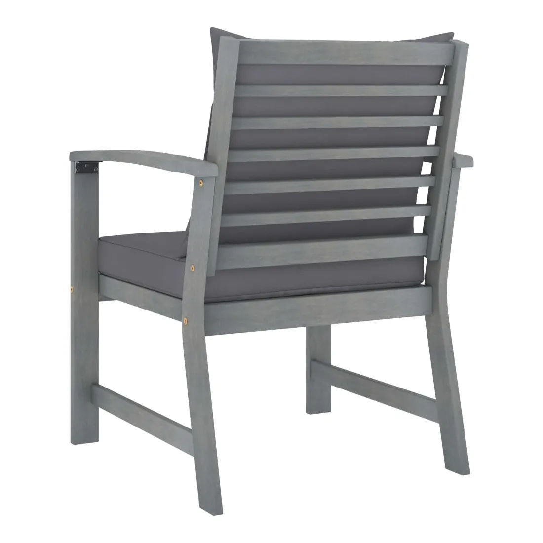 - Matériau : bois d'acacia massif avec finition lavée grise, tissu (100 % polyester)