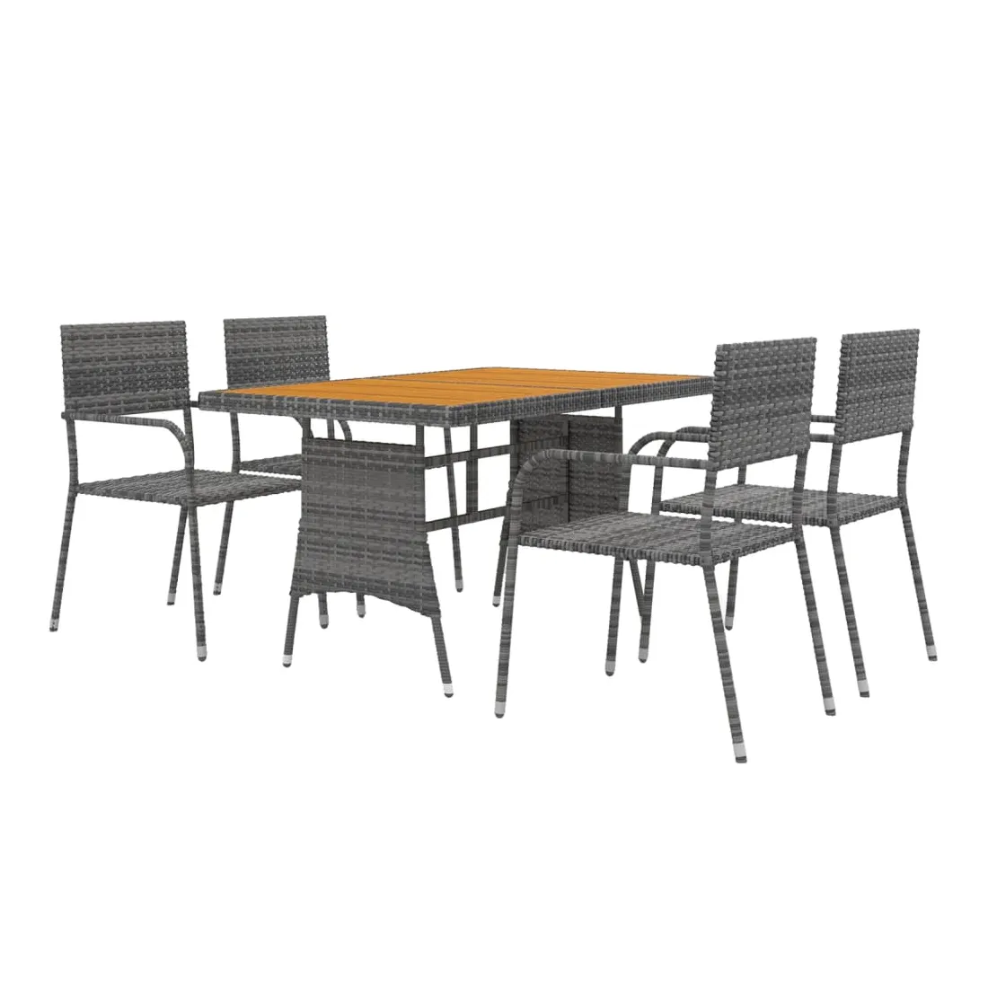 Mobilier à dîner d'extérieur 5 pcs Résine tressée Gris