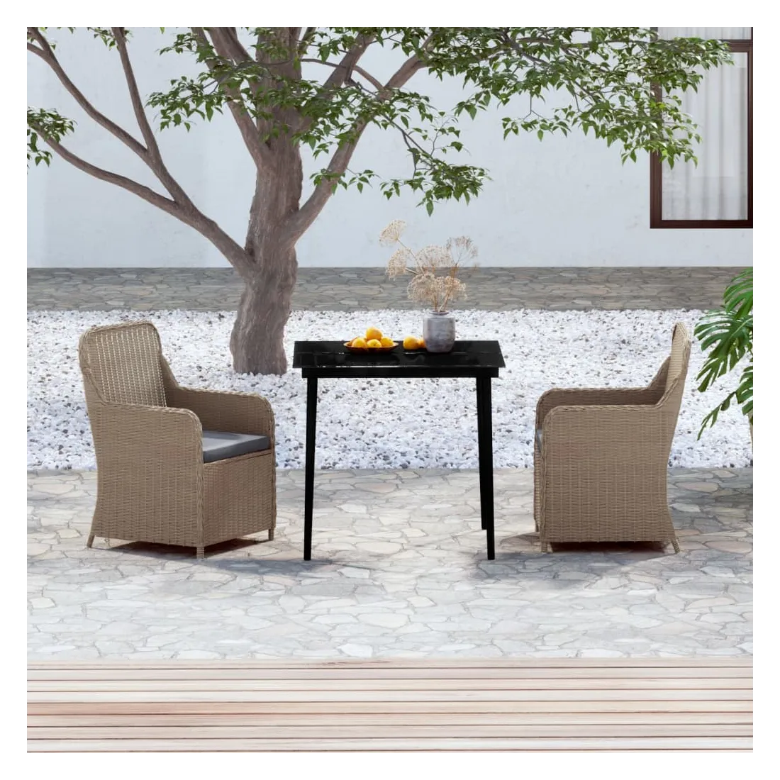 vidaXLCet élégant ensemble de salle à manger de jardin est destiné à être le point de mire de votre jardin ou patio ! C'est un excellent choix pour les repas en plein air ou pour vous détendre dans l'espace extérieur ! Les cadres en acier endui de poudre rendent la table et les chaises solides et stables pour une utilisation quotidienne en extérieur. Grâce à la résine tressée résistante à l'eau, les chaises sont faciles à nettoyer et résistantes à l'usure. La forme ergonomique et les coussins amovibles bien rembourrés en mousse offrent un confort d'assise optimal. Les housses de coussin en polyester, qui nécessitent peu d'entretien, peuvent être facilement retirées et lavées. En outre, le dessus de table en verre lisse est facile à nettoyer avec un chiffon humide et est parfait pour placer des repas, des boissons et d'autres objets décoratifs. Remarque : afin de prolonger la durée de vie des meubles d'extérieur, nous vous recommandons de les protéger avec une housse imperméable.