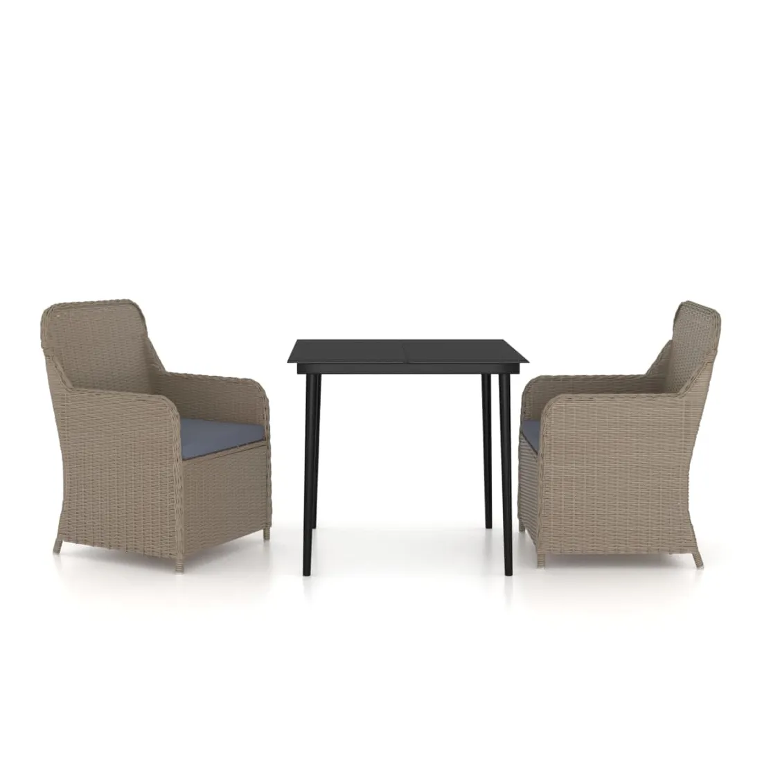Ensemble à manger de jardin avec coussins 3 pcs marron