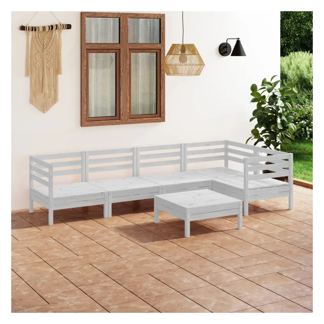 Cet ensemble de salon de jardin en bois est un choix idéal pour vous détendre, profiter du beau temps, faire une sieste ou discuter en famille ou entre amis. Avec son design intemporel de palette, l'ensemble de canapés en bois ajoute une touche de charme rustique à votre terrasse, jardin ou salon. Fabriqué en bois de pin massif, cet ensemble de mobilier d'extérieur est très durable et résistant aux intempéries. Cet ensemble de canapés a une construction solide et nécessite peu d'entretien. De plus, la conception modulaire permet également de placer l'ensemble dans n'importe quel arrangement selon vos goûts. Remarque : afin de prolonger la durée de vie des meubles d'extérieur, nous vous recommandons de les protéger avec une housse imperméable.