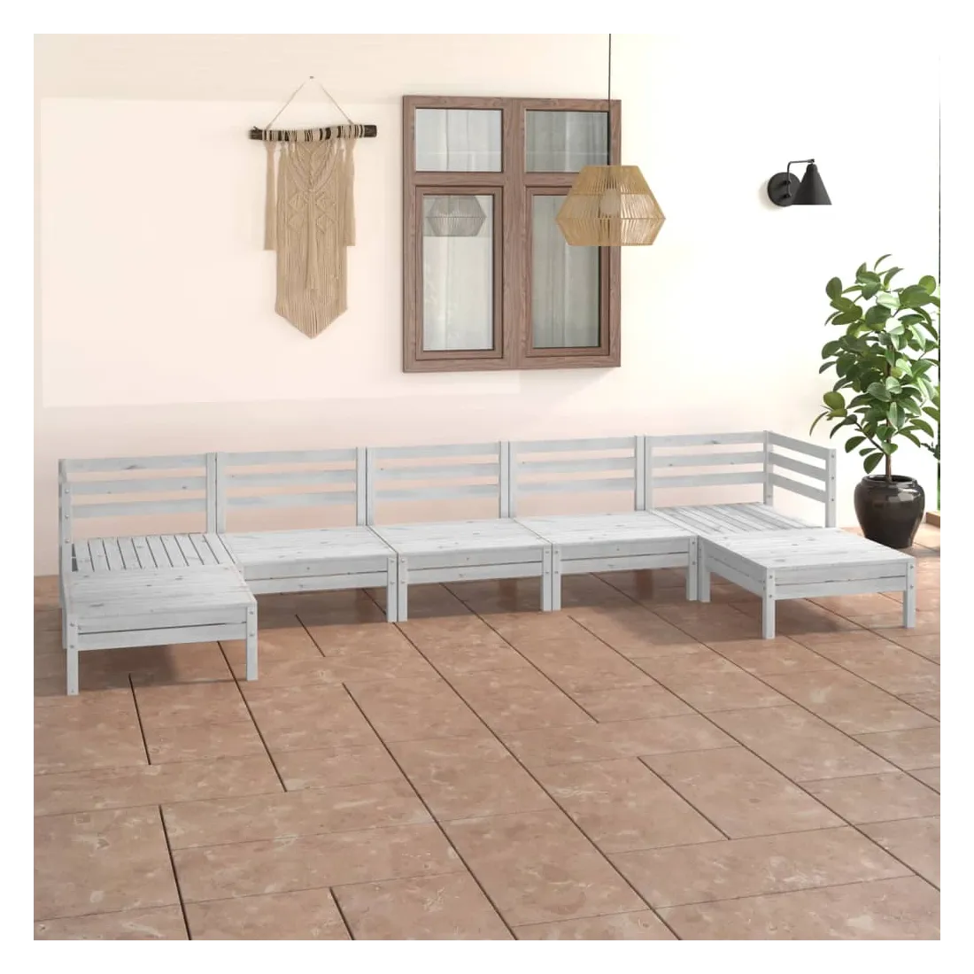 Salon de jardin 7 pcs Blanc Bois de pin massif