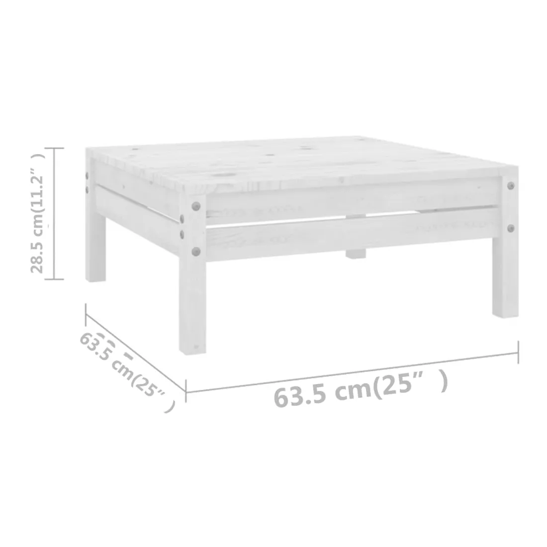 • Dimensions de la table/du repose-pied : 63,5 x 63,5 x 28,5 cm (L x l x H)