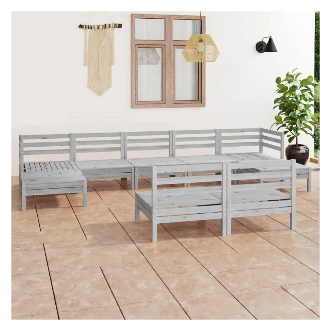 Cet ensemble de salon de jardin en bois est un choix idéal pour vous détendre, profiter du beau temps, faire une sieste ou discuter en famille ou entre amis. Avec son design intemporel de palette, l'ensemble de canapés en bois ajoute une touche de charme rustique à votre terrasse, jardin ou salon. Fabriqué en bois de pin massif, cet ensemble de salon de patio est très durable et résistant aux intempéries. Cet ensemble de meubles a une construction solide et nécessite peu d'entretien. De plus, la conception modulaire permet également de placer l'ensemble dans n'importe quel arrangement selon vos goûts. Remarque : afin de prolonger la durée de vie des meubles d'extérieur, nous vous recommandons de les protéger avec une housse imperméable.