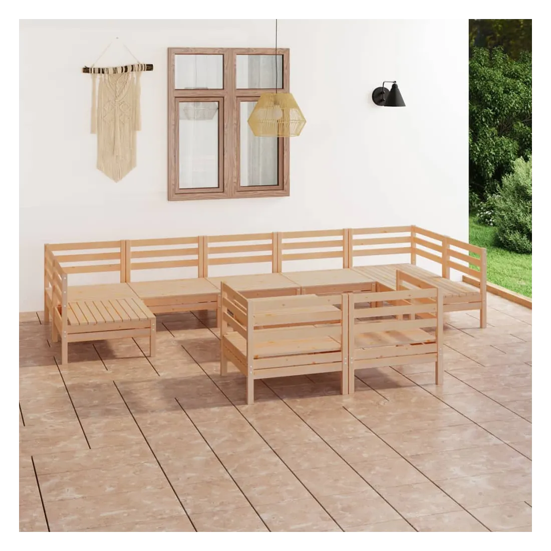 Salon de jardin 10 pcs Bois de pin massif