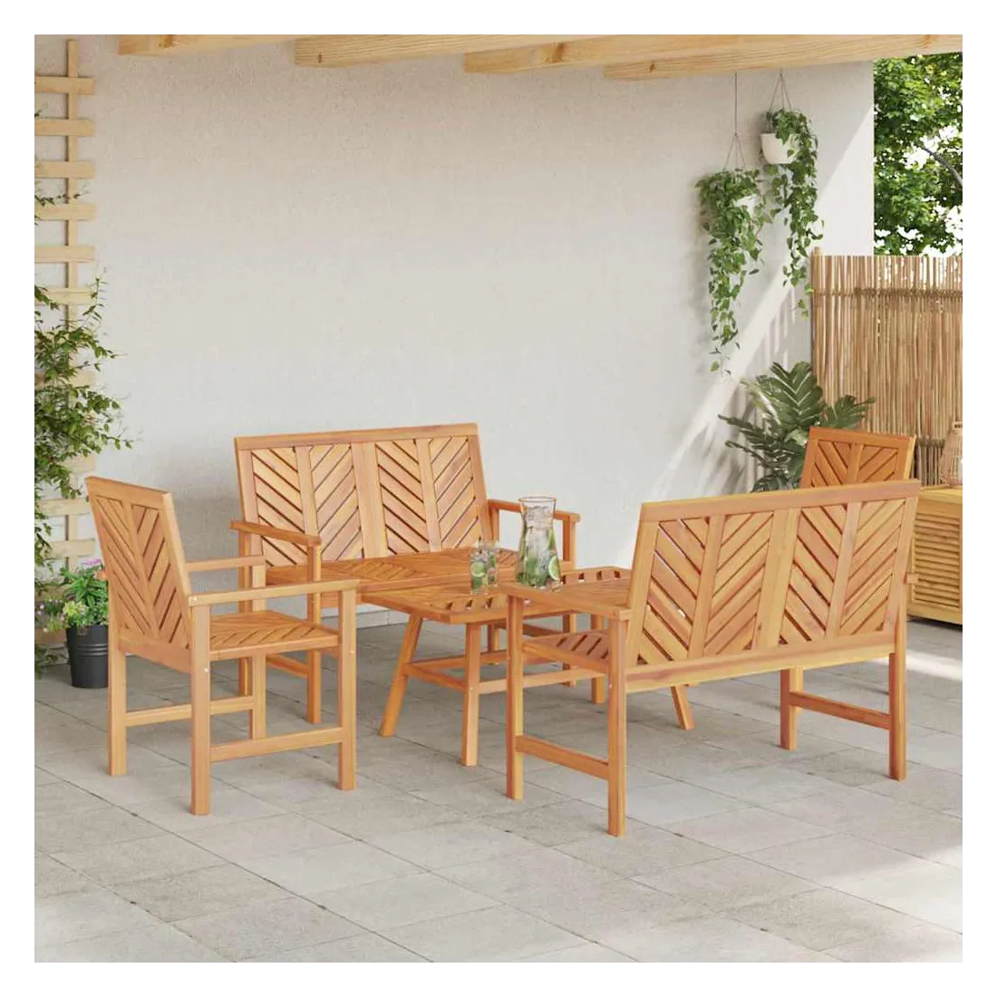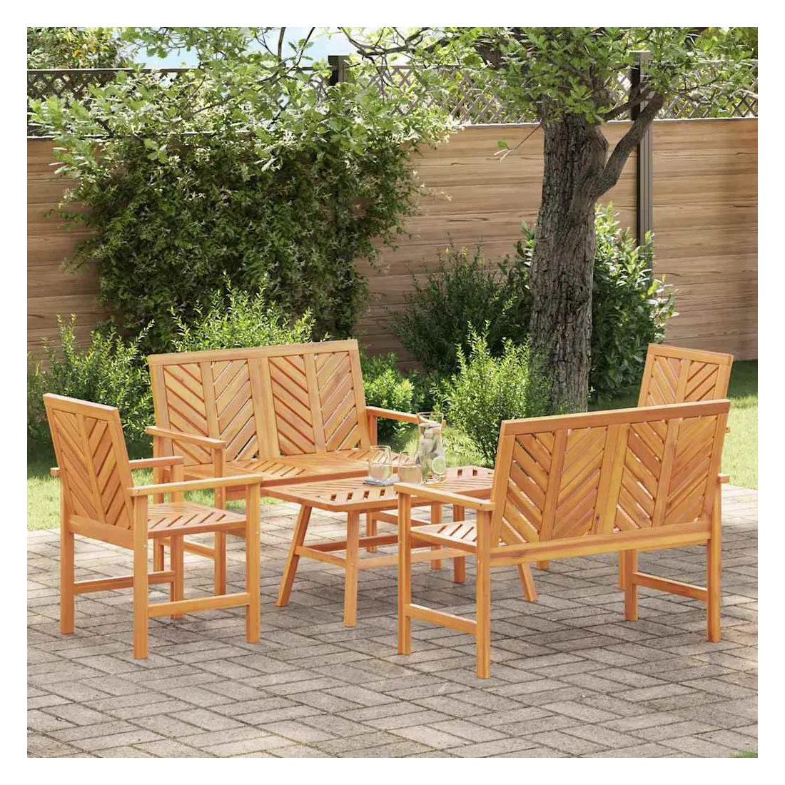 Transformez votre jardin ou terrasse avec ce jardin lounge set stylé, conçu pour donner une touche moderne à votre espace extérieur. Ses lignes épurées et son design élégant apportent une ambiance de simplicité et de confort, parfait pour ceux qui veulent rafraîchir leur cadre extérieur. Imaginez-vous en train de vous détendre, bercé par la nature autour de vous. Bois d'acacia massif : Fait en bois d'acacia robuste qui résiste bien aux intempéries. Ce matériau assure une durabilité tout en gardant son beau look au fil du temps, alliant style et fonctionnalité. Sa couleur brune chaleureuse se marie bien dans n'importe quel jardin. Design du dos soigné : L'arrière bien fini donne une allure propre à l'ensemble. Conçu pour offrir une belle finition, il permet divers agencements, que ce soit contre un mur ou au milieu de l'espace. Accoudoirs confortables : Les accoudoirs ergonomiques en bois d'acacia apportent du confort et du soutien. Ils sont peints dans une teinte brune assortie, offrant un look harmonieux qui rend vos moments de détente encore plus agréables. Soutien solide avec pieds robustes : Les pieds en bois d'acacia garantissent un bon soutien pour chaque pièce. Leur design simple s'harmonise avec le style minimaliste, renforçant les lignes épurées. Entretien facile : Garder cet ensemble propre est super simple : un coup d'éponge humide suffit. Ces instructions d'entretien garantissent un aspect frais et joli sans trop d'effort.