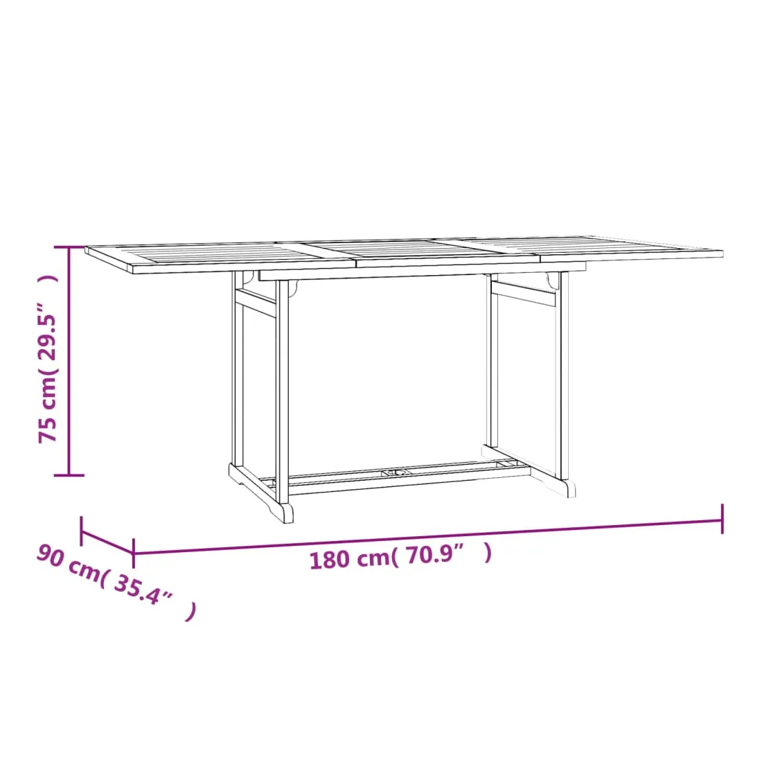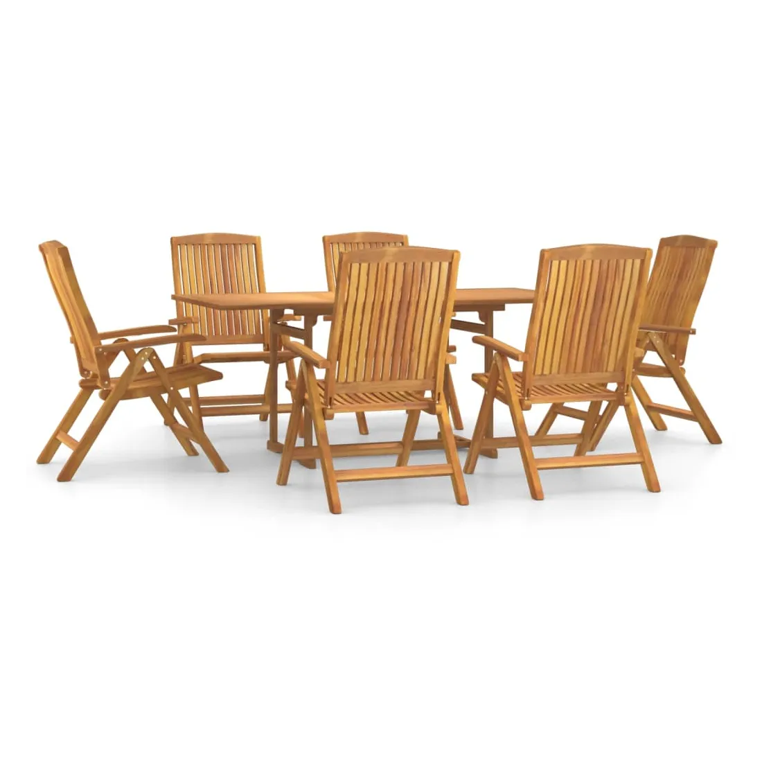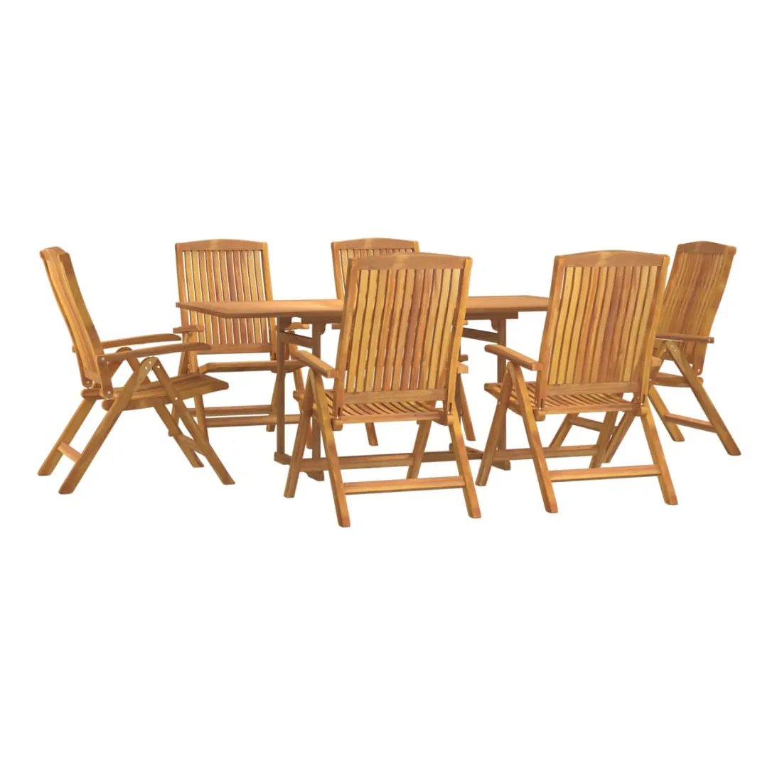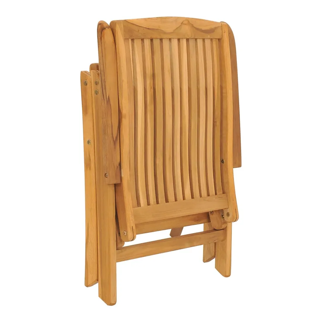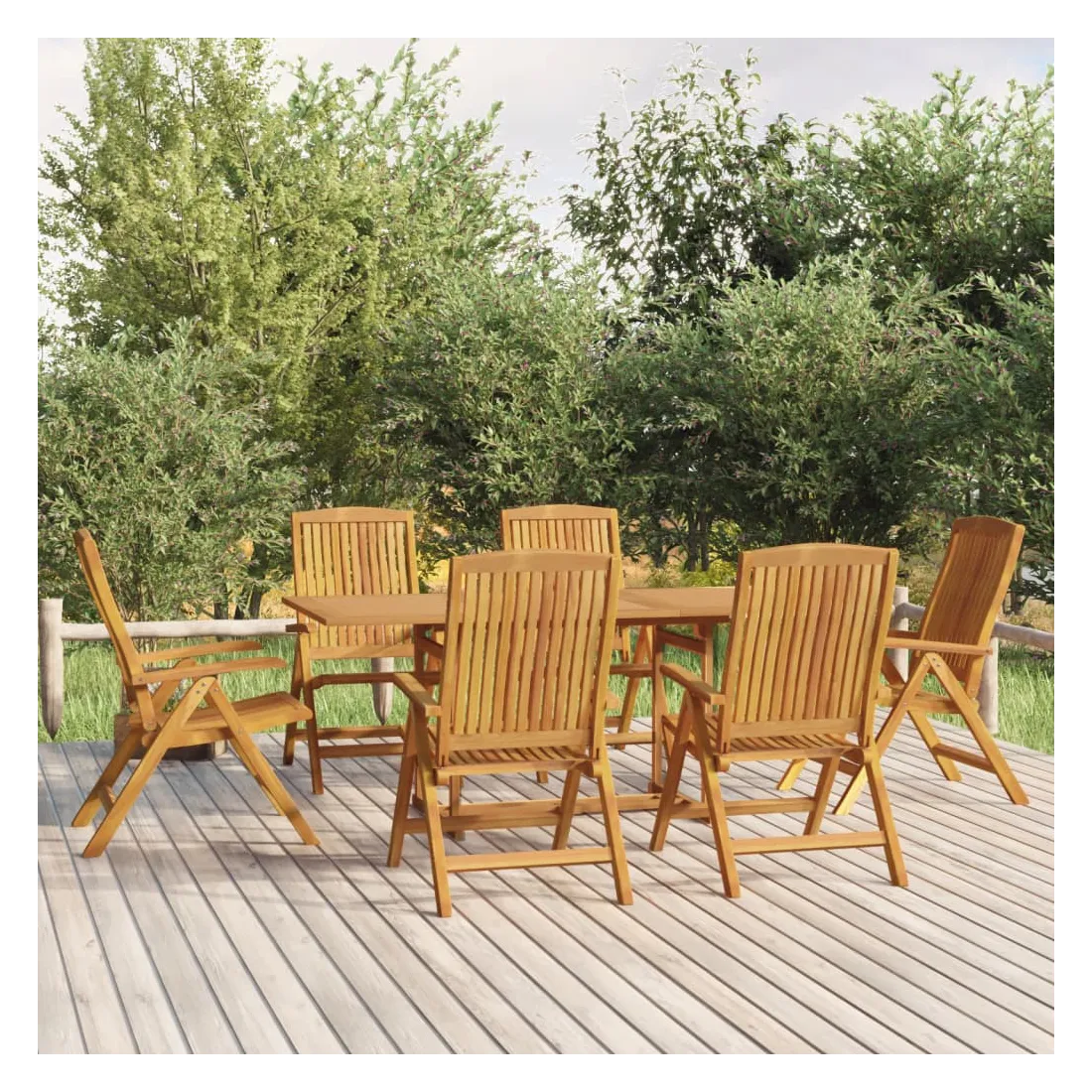 Améliorez le confort de votre espace extérieur avec cet ensemble de salle à manger de jardin en bois ! Matériau durable : le bois de teck massif est un beau matériau naturel. Il a été chevronné, séché au four, puis sablé finement pour lui donner une apparence très lisse. Le bois de teck est connu pour sa résistance exceptionnelle et résistance aux intempéries.Cadre stable : le cadre en bois de l'ensemble de salle à manger garantit robustesse et stabilité.Table pratique : grâce à sa surface sablée, la table de salle à manger est résistante aux intempéries et facile à nettoyer. Le dessus de la table est pourvu d'un trou pour parasol, ce qui permet de fixer facilement un parasol pour créer un coin ombragé.Chaises confortables : les dossiers des chaises de jardin sont réglables en 6 positions pour que vous puissiez toujours trouver la position la plus confortable. Les chaises peuvent également être facilement pliées lorsqu'elles ne sont pas utilisées, pour un rangement et un transport aisés. Bon à savoir :Pour faciliter au maximum le montage, chaque produit est livré avec des instructions. Remarque :Pour que vos meubles d'extérieur restent beaux, nous vous recommandons de les protéger avec une housse imperméable.