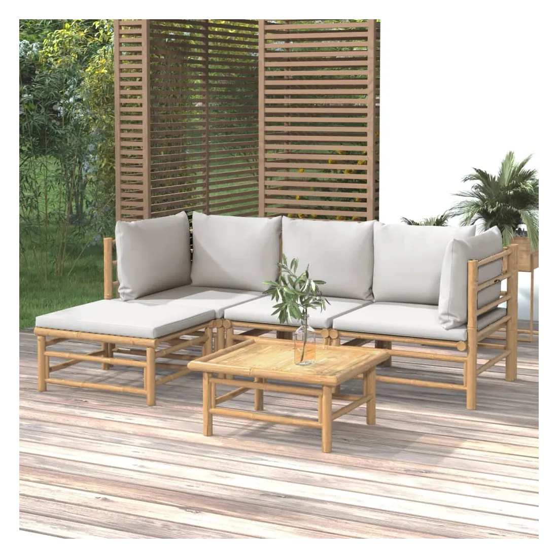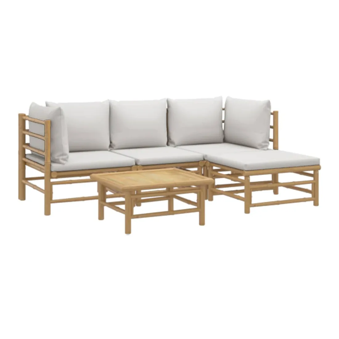 Salon de jardin 5 pcs avec coussins gris clair bambou