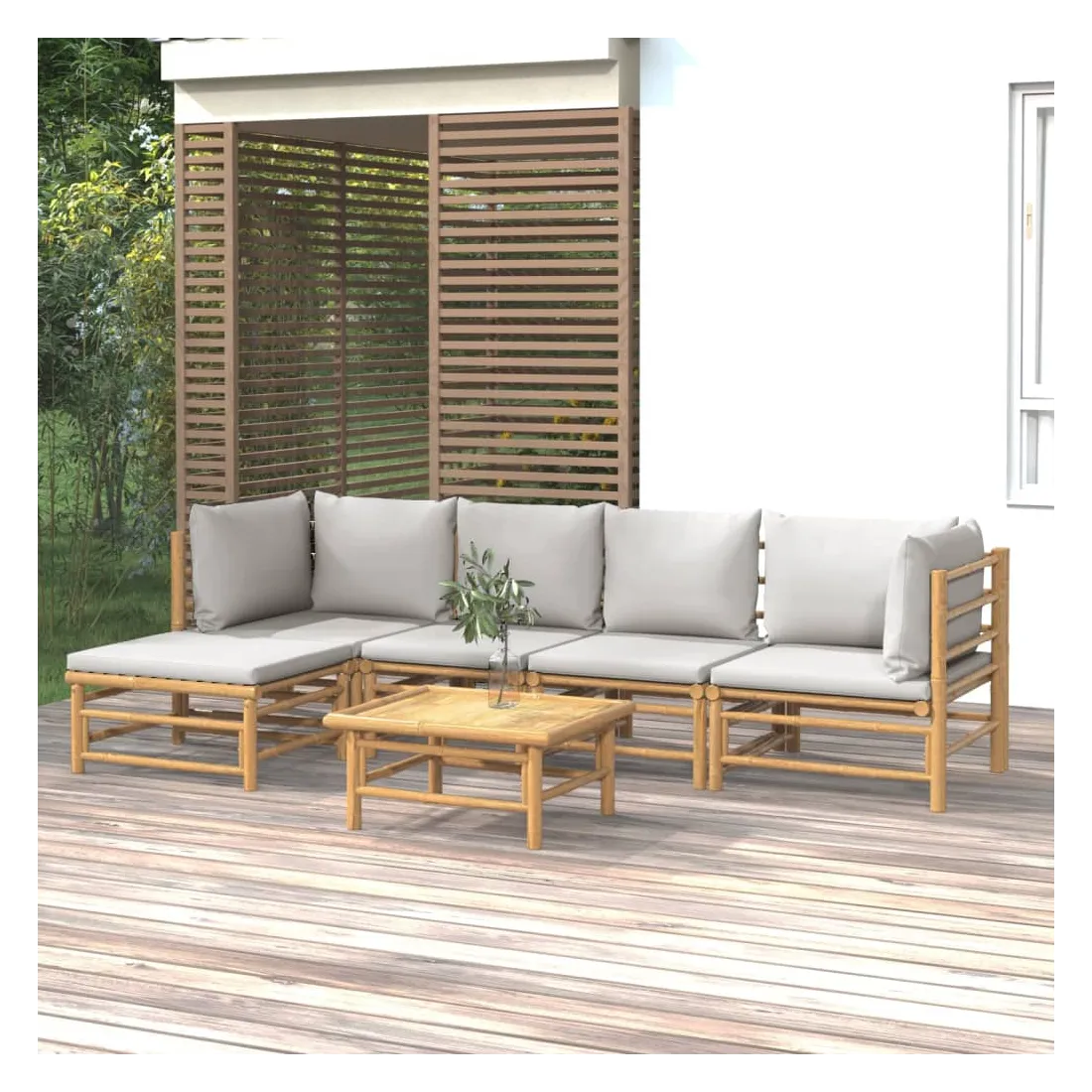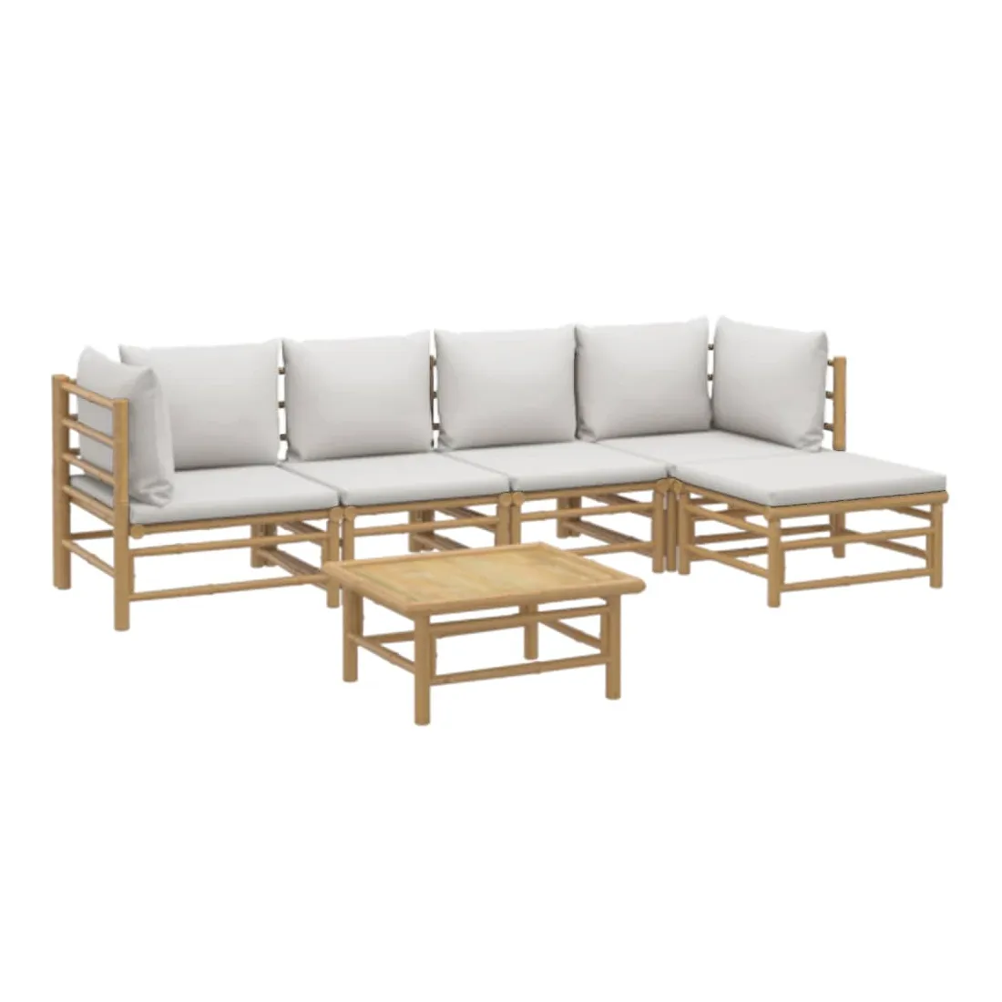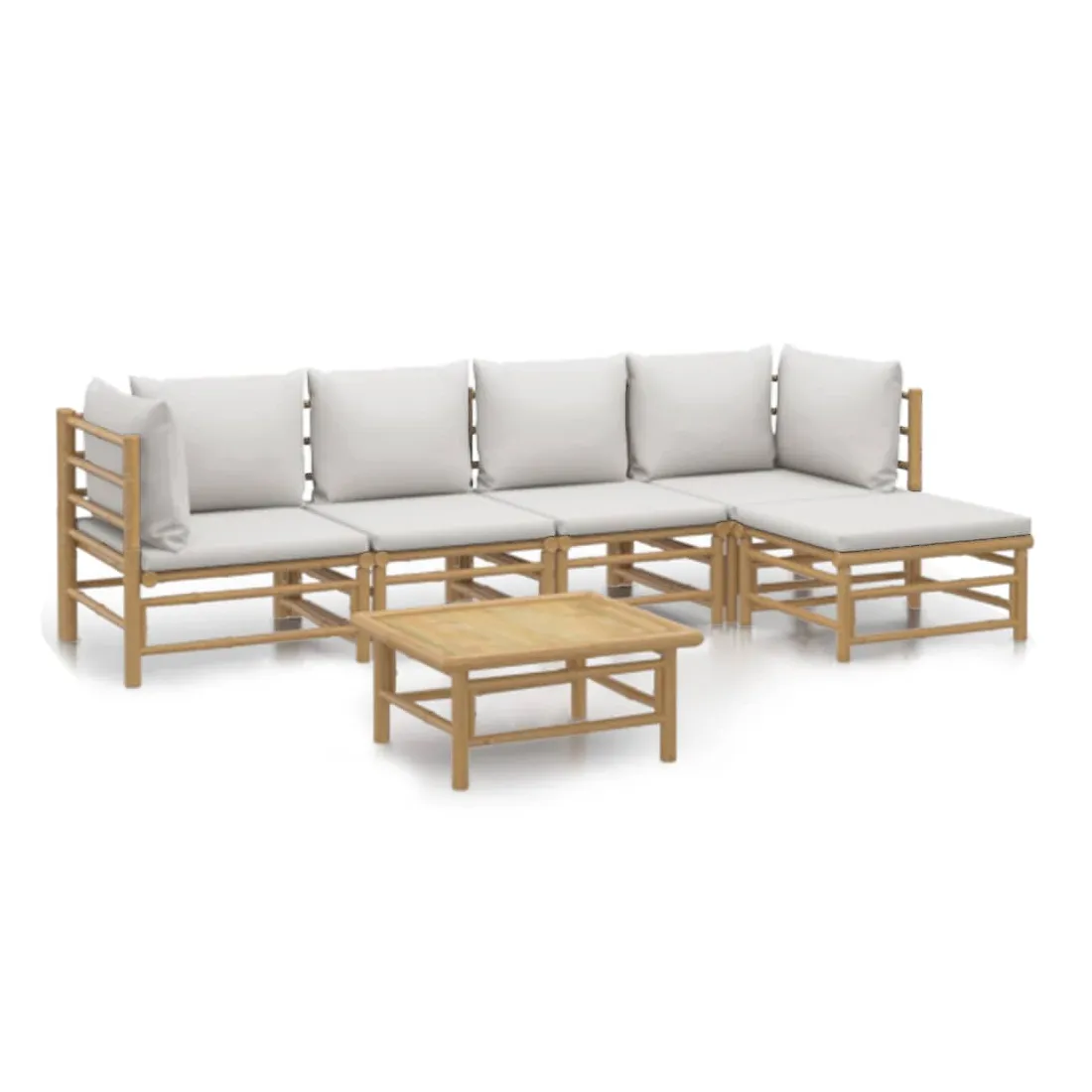 Salon de jardin 6 pcs avec coussins gris clair bambou