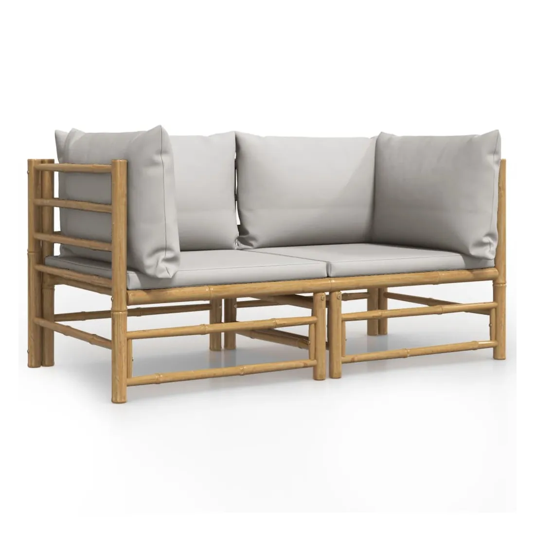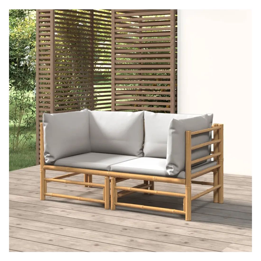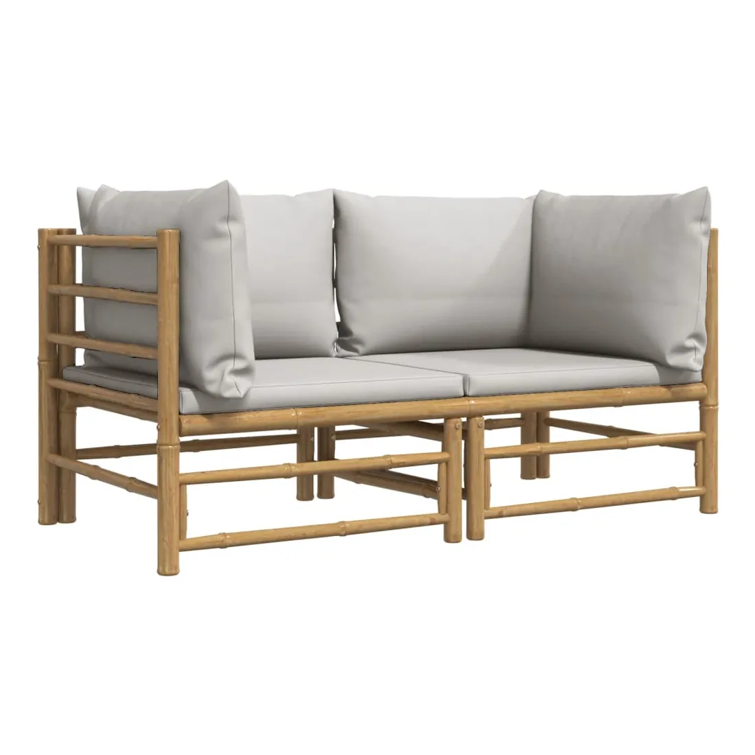 Canapés d'angle de jardin avec coussins gris clair 2 pcs bambou