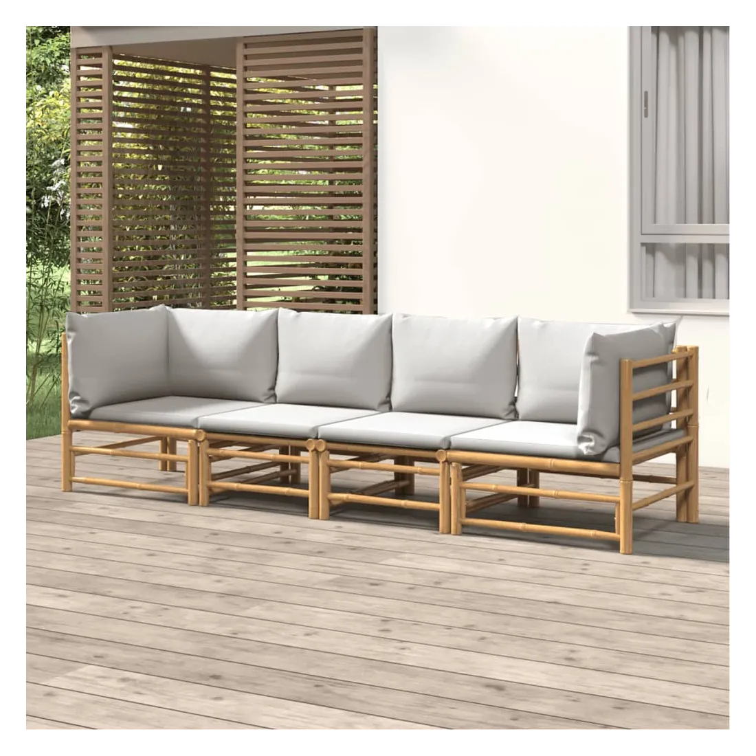 Salon de jardin 4 pcs avec coussins gris clair bambou