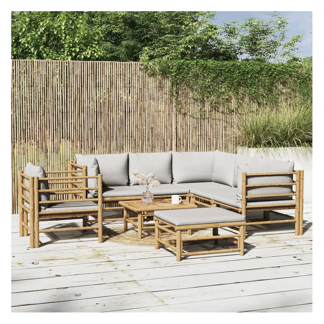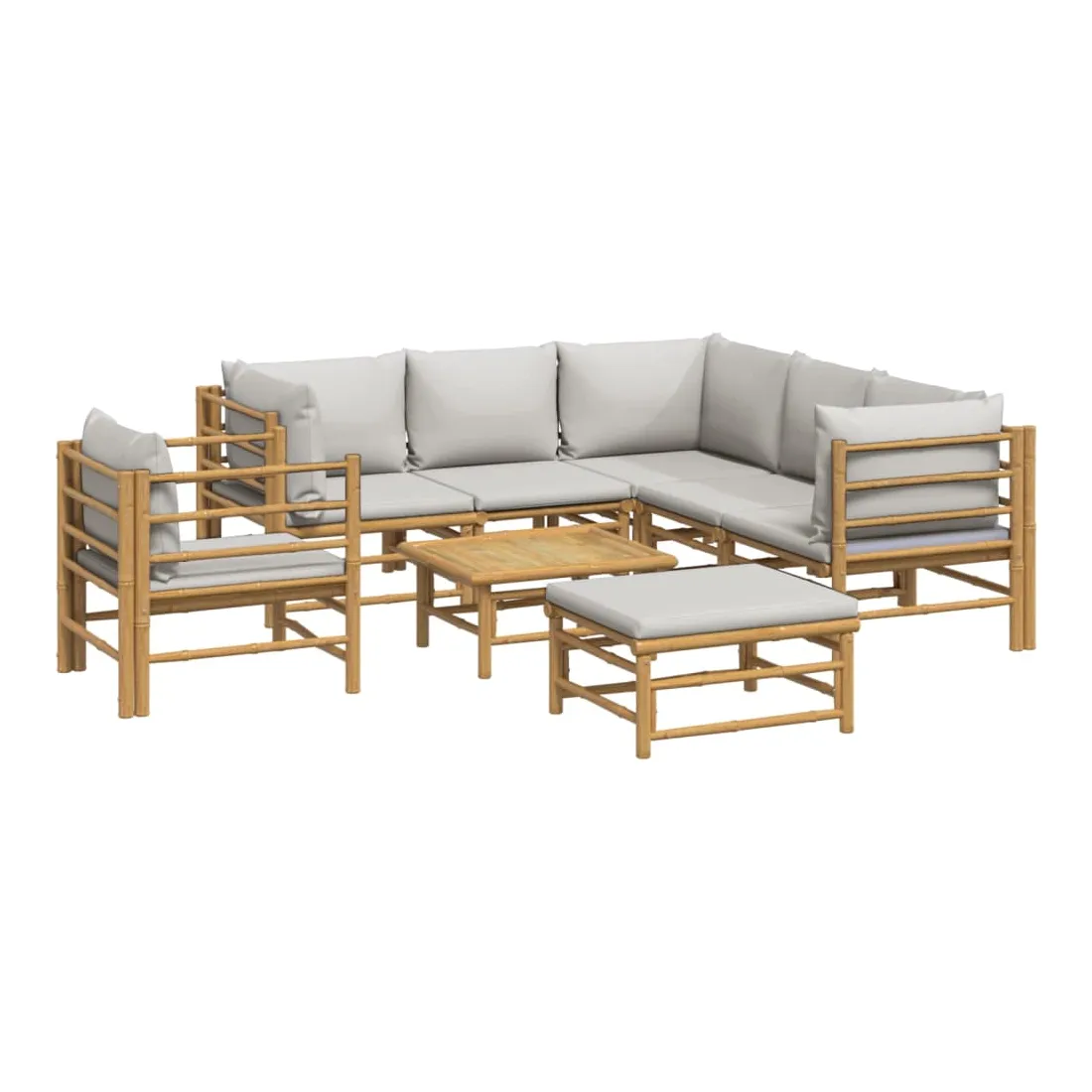 Salon de jardin 8 pcs avec coussins gris clair bambou