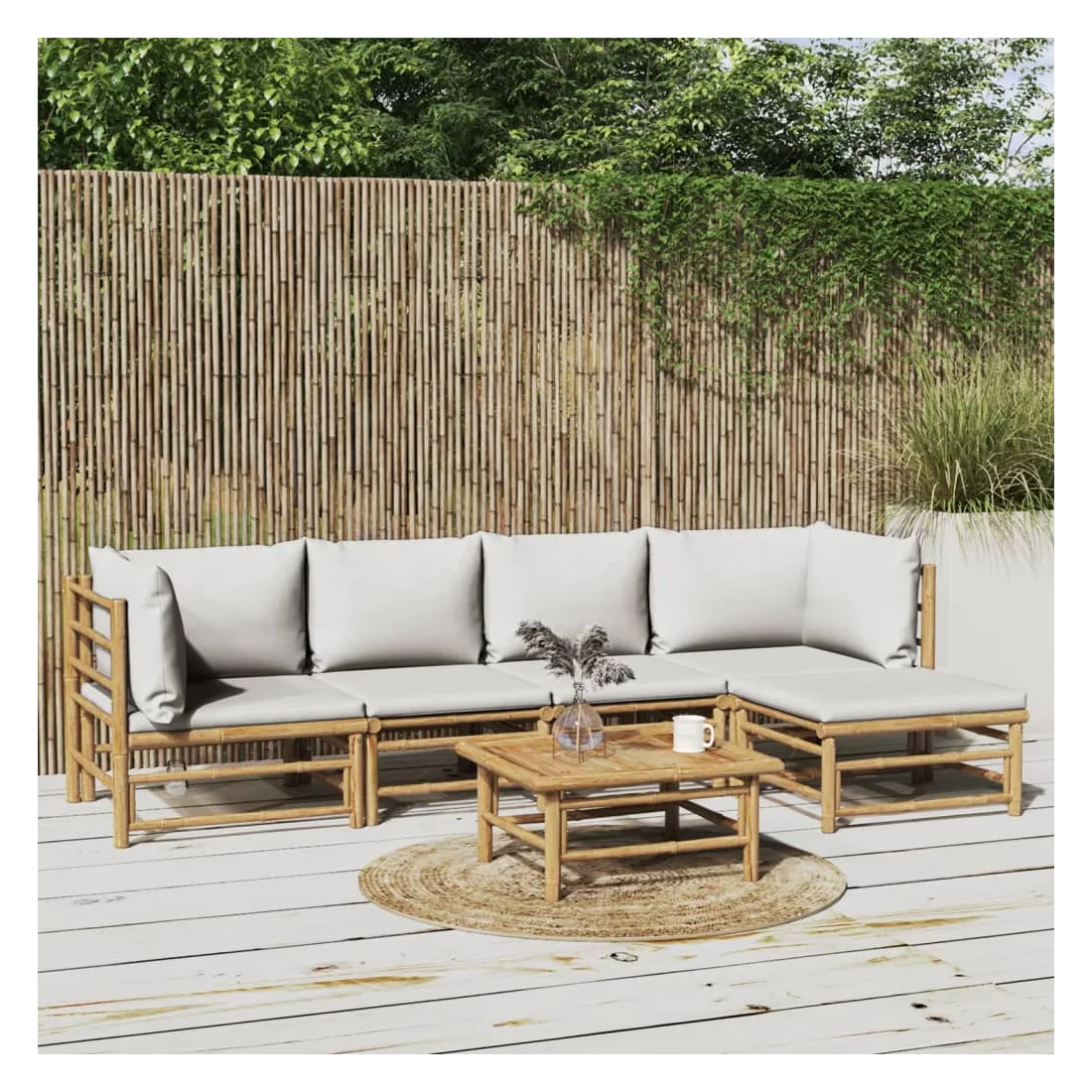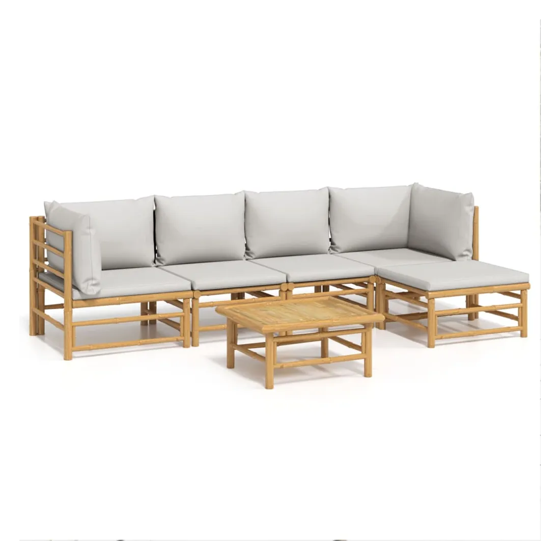 Salon de jardin 6 pcs avec coussins gris clair bambou
