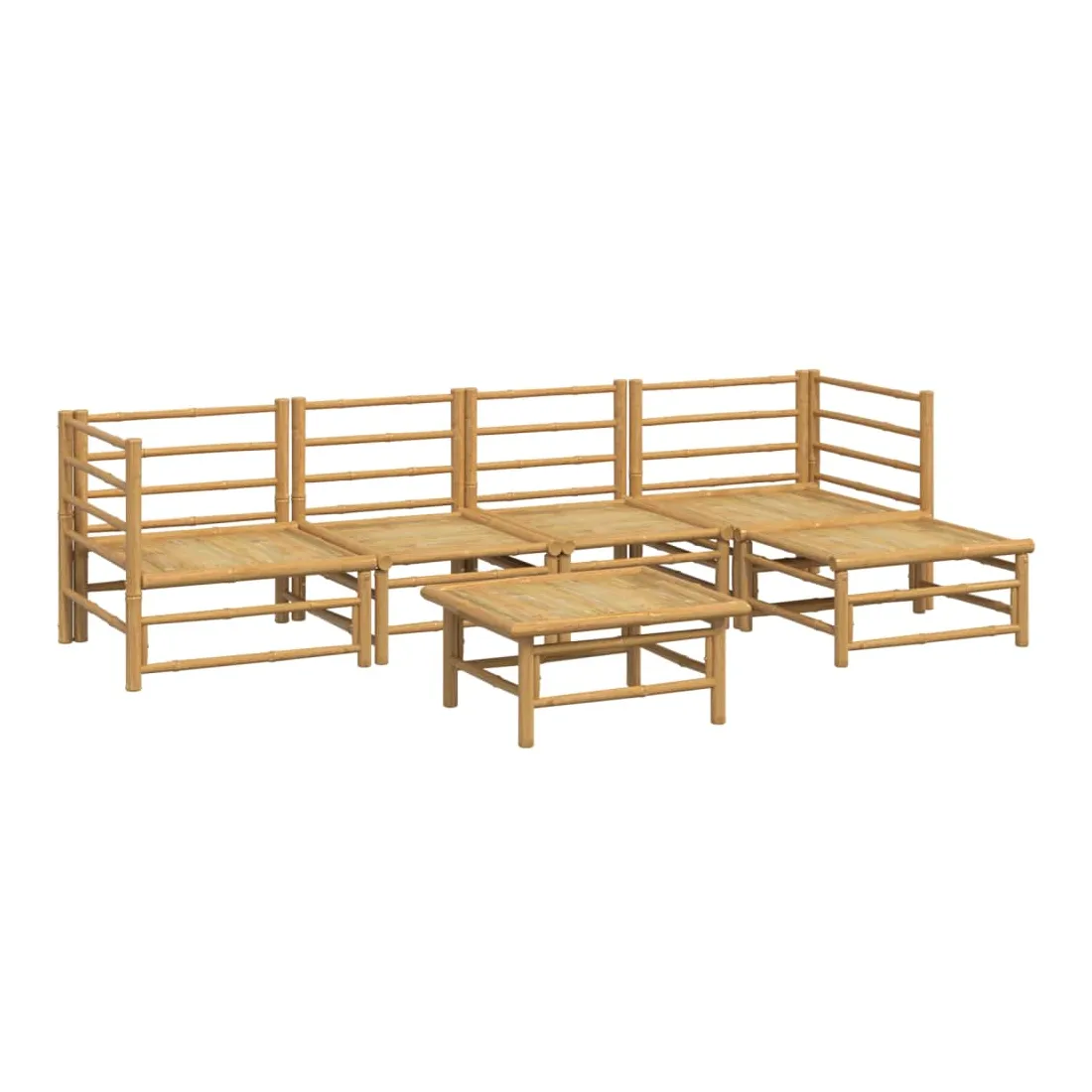Savourez une tasse de café ou de thé par beau temps dans votre espace extérieur avec cet élégant ensemble de salon de jardin en bambou ! Matériau durable : le bambou est connu pour sa flexibilité et sa dureté. Les meubles en bambou sont une bonne option lorsque vous voulez des meubles d'extérieur solides fabriqués à partir de matériaux naturels.Expérience d'assise confortable : le dossier et l'accoudoir ajoutent un confort d'assise supplémentaire pour l'ensemble de canapé de jardin. De plus, les coussins d'assise et de dossier moelleux offrent un confort pendant votre temps d'assise.Table pratique : la table robuste est parfaite pour placer des repas, des boissons et d'autres objets décoratifs.Conception modulaire : l'ensemble de salon est flexible et facile à déplacer, vous pouvez donc le combiner avec d'autres segments modulaires dans la boutique en ligne pour créer vos propres configurations d'ensemble de salon d'extérieur ! Remarque :Pour que vos meubles d'extérieur restent beaux, nous vous recommandons de les protéger avec une housse imperméable.Bon à savoir :Pour faciliter au maximum le montage, chaque produit est livré avec des instructions.