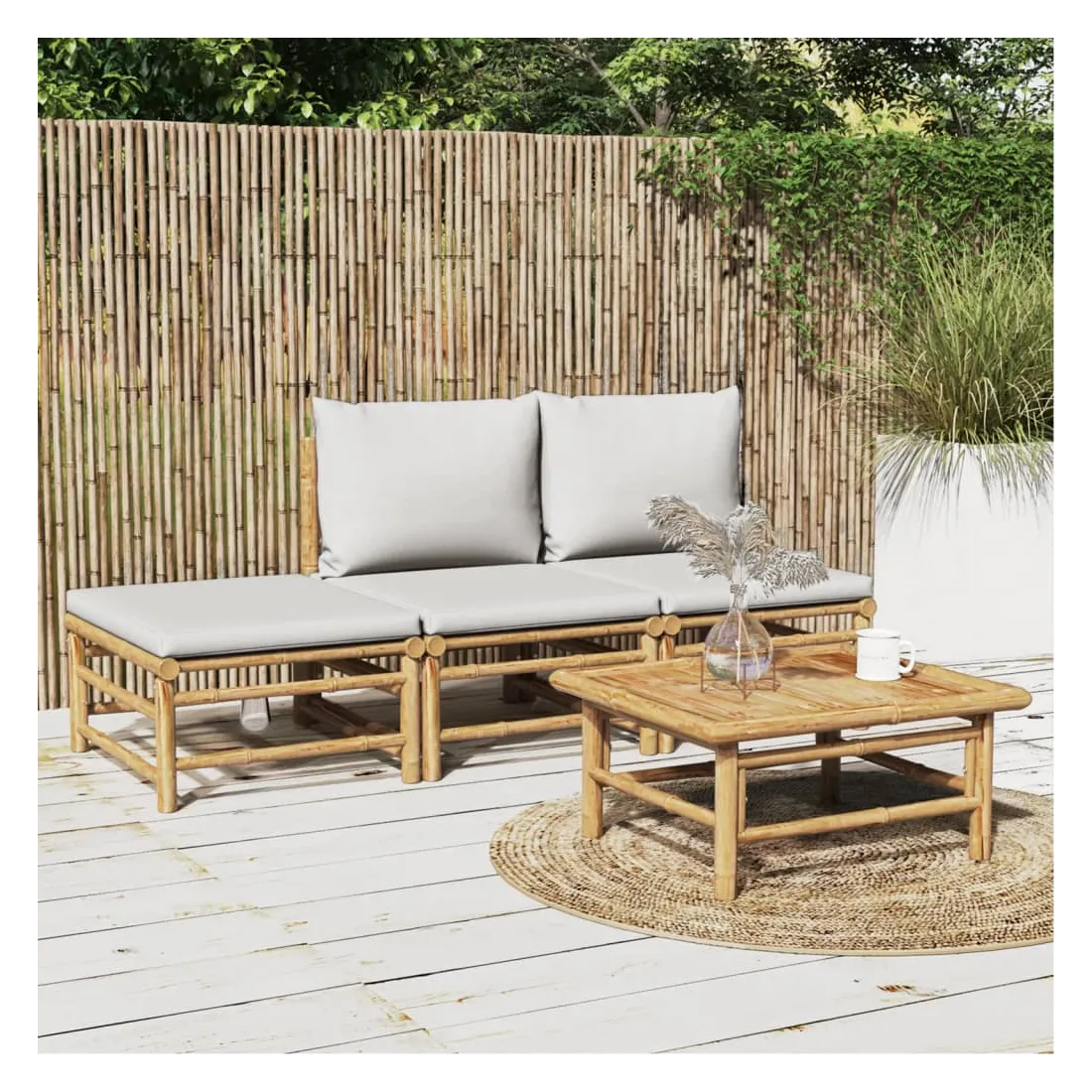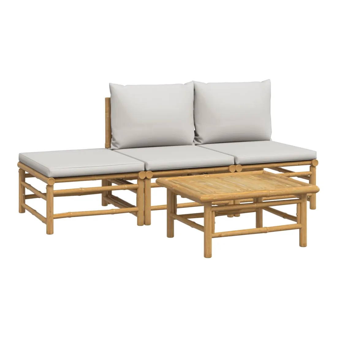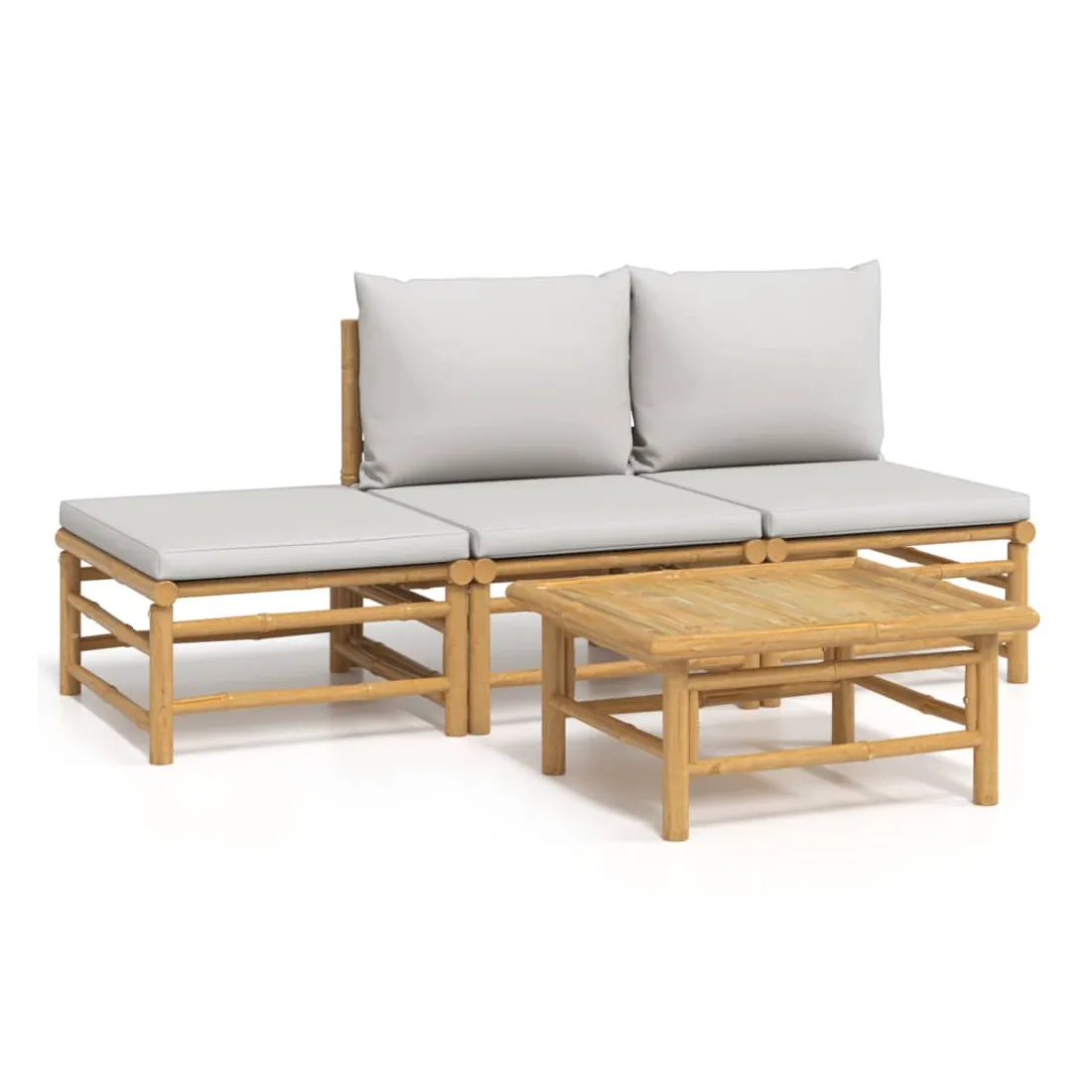 Salon de jardin 4 pcs avec coussins gris clair bambou