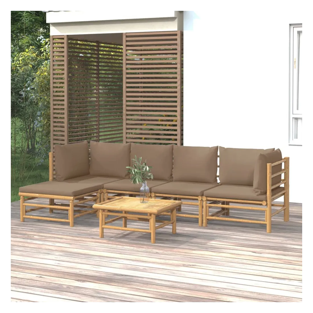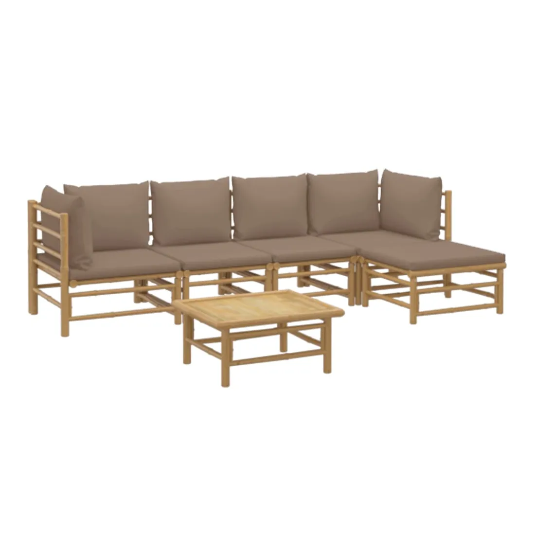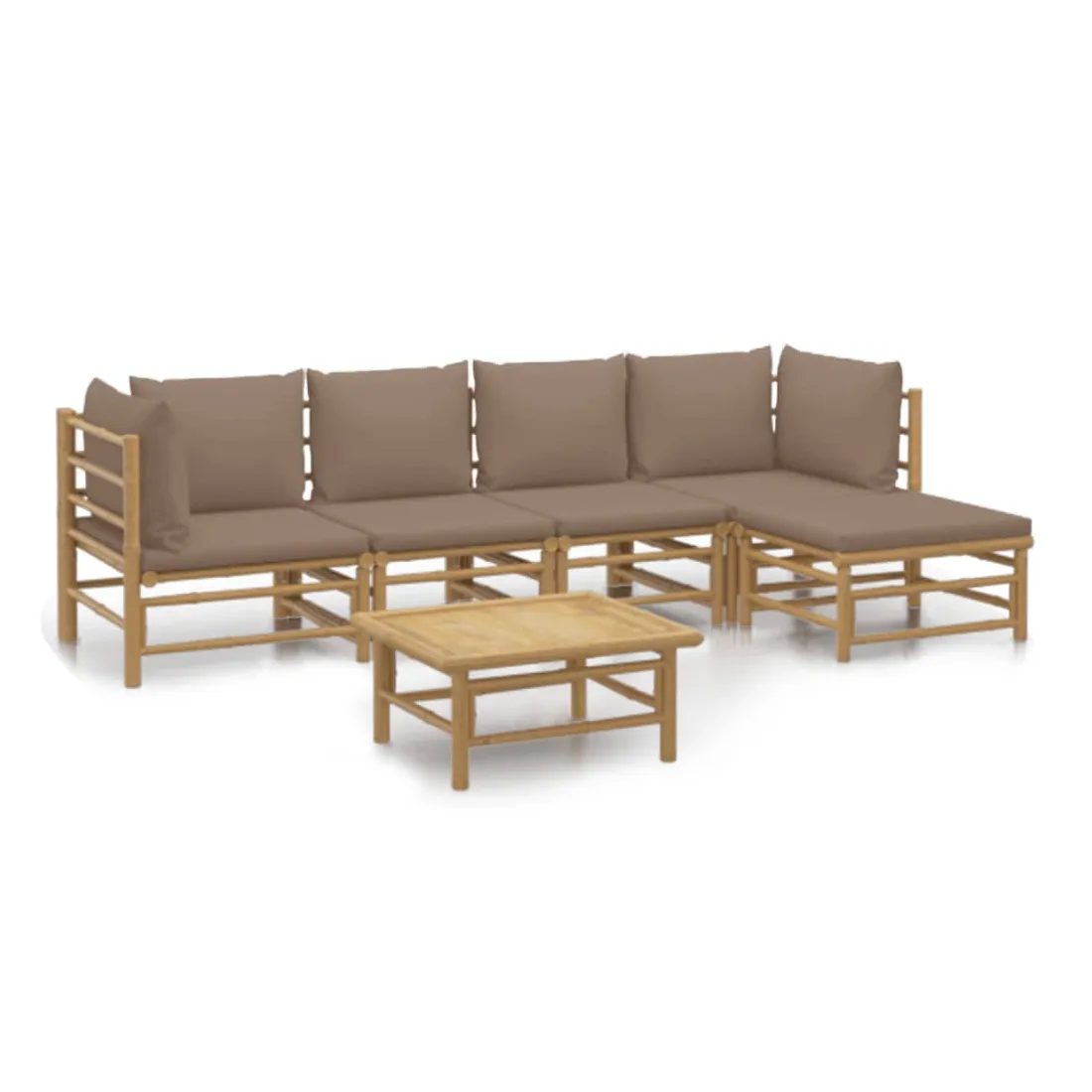 Salon de jardin 6 pcs avec coussins taupe bambou