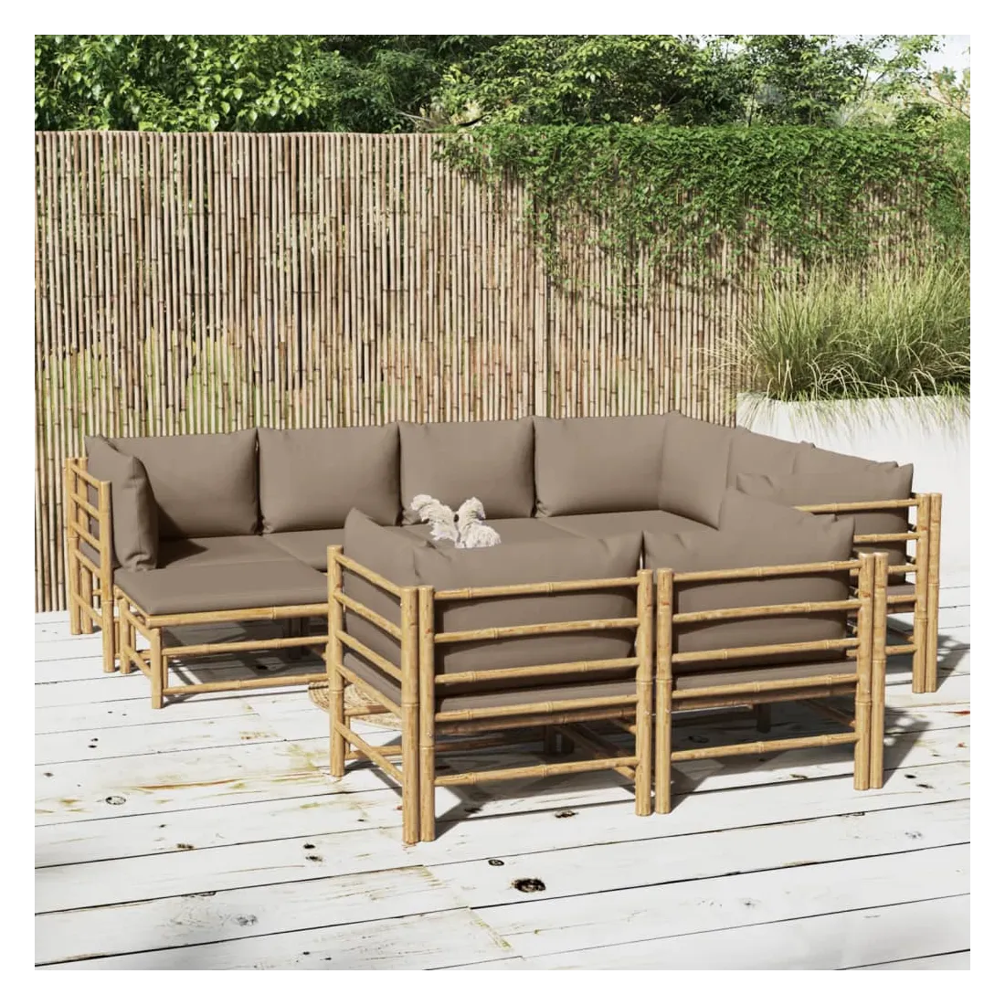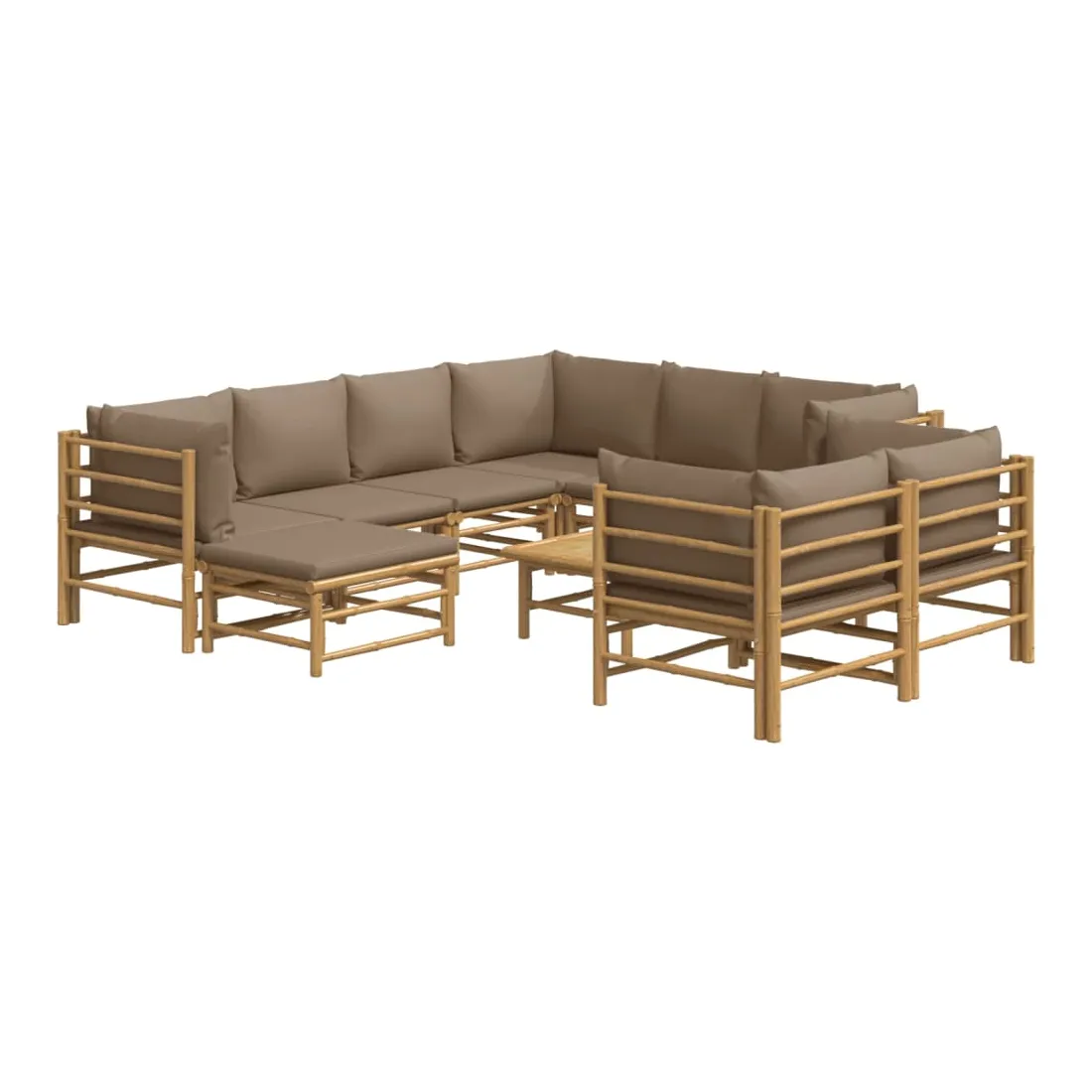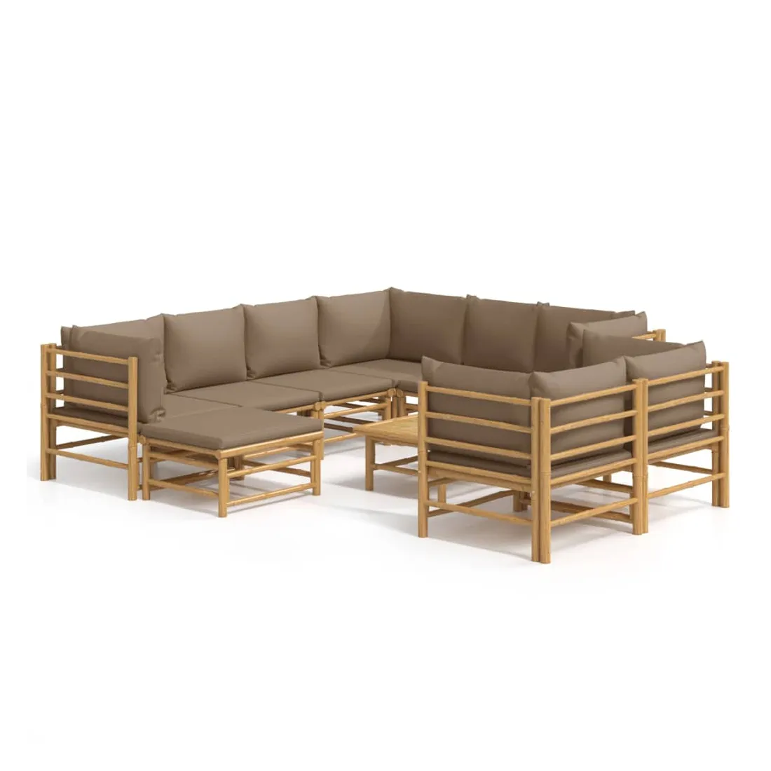 Salon de jardin 10 pcs avec coussins taupe bambou