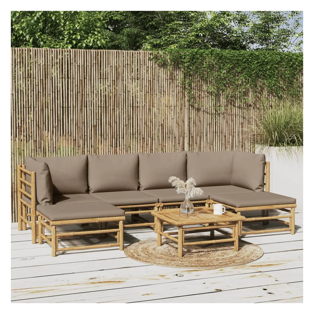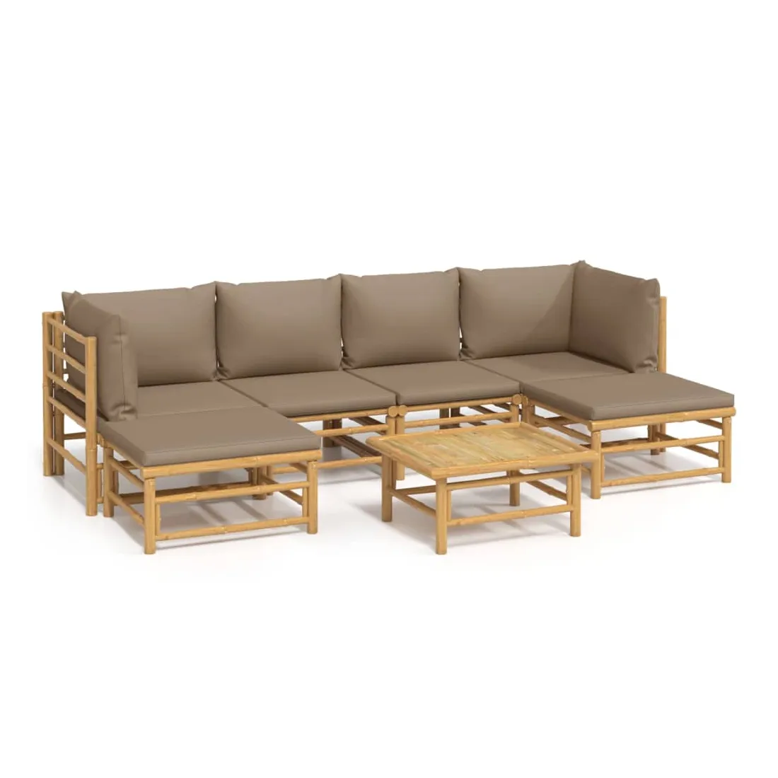 Salon de jardin 7 pcs avec coussins taupe bambou