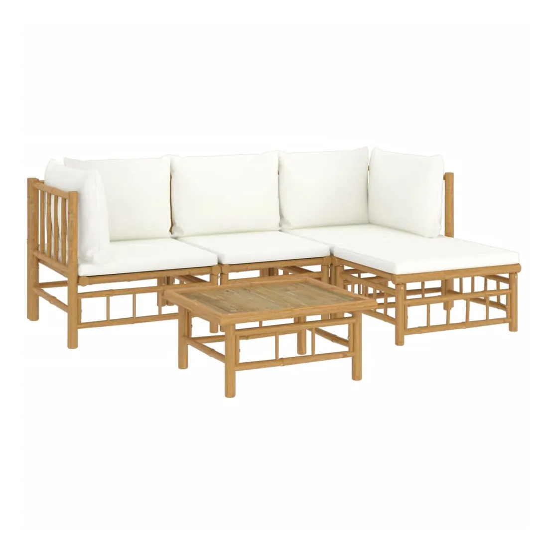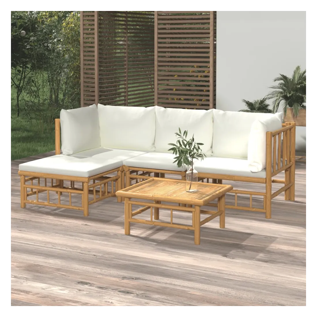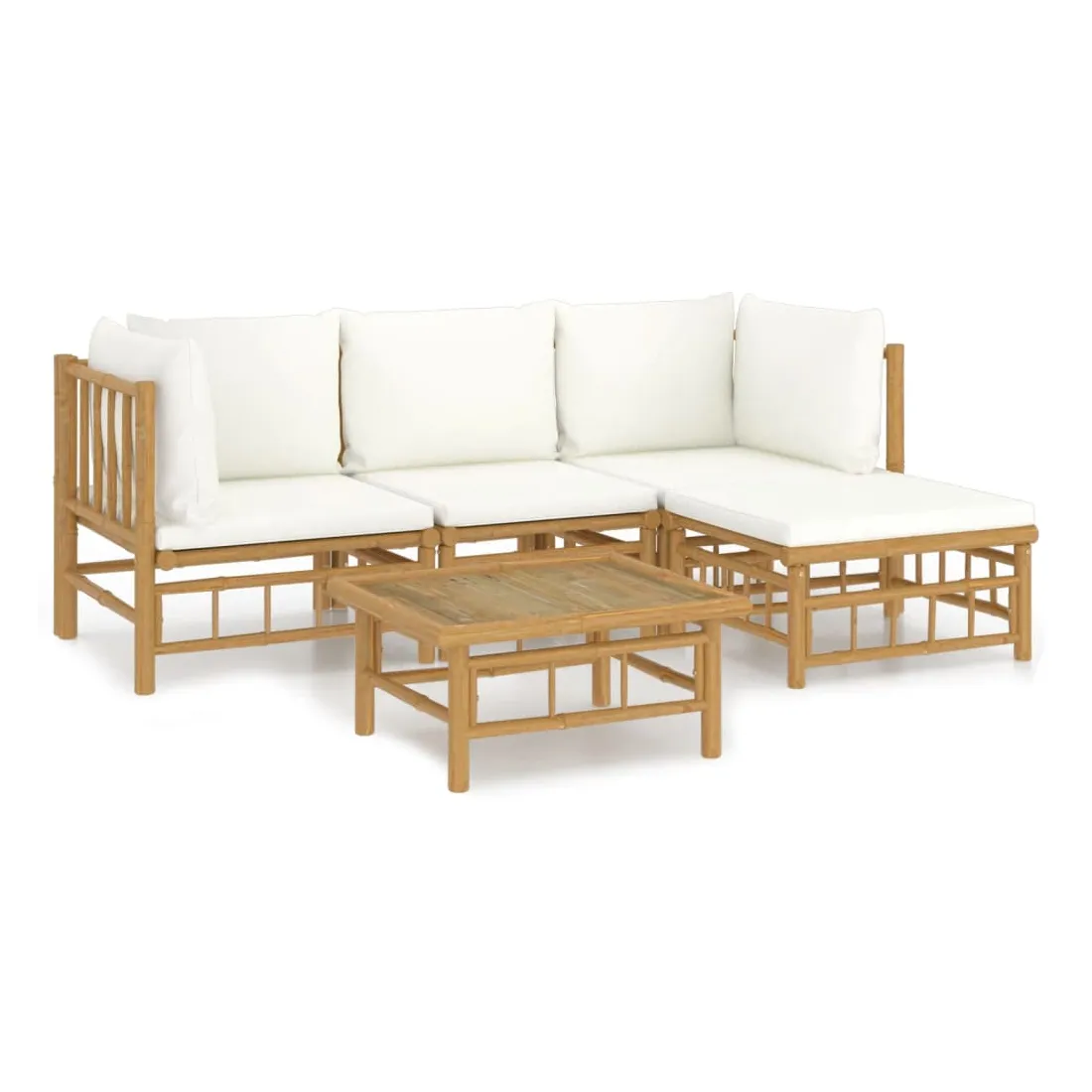 Salon de jardin 5 pcs avec coussins blanc crème bambou