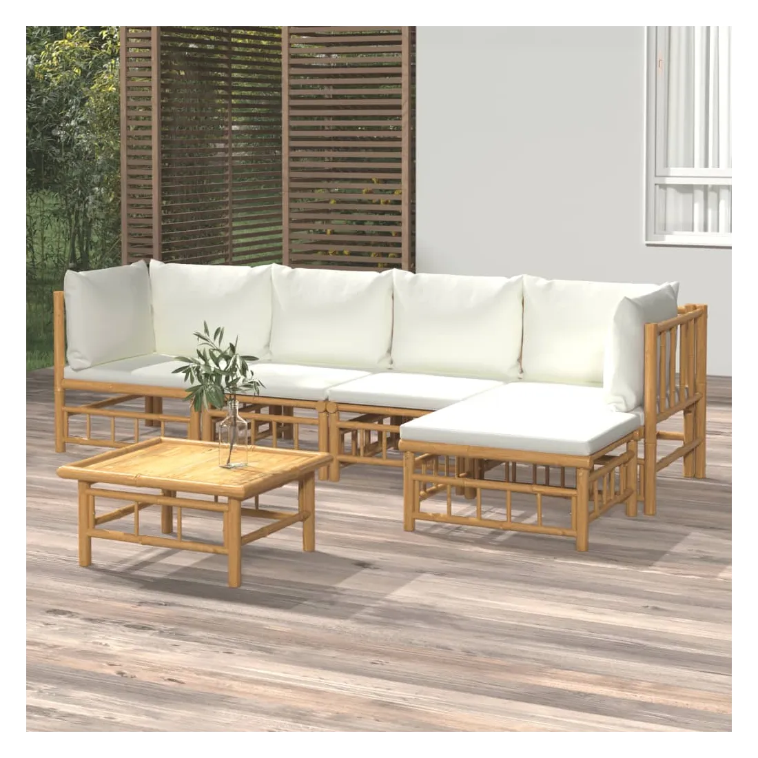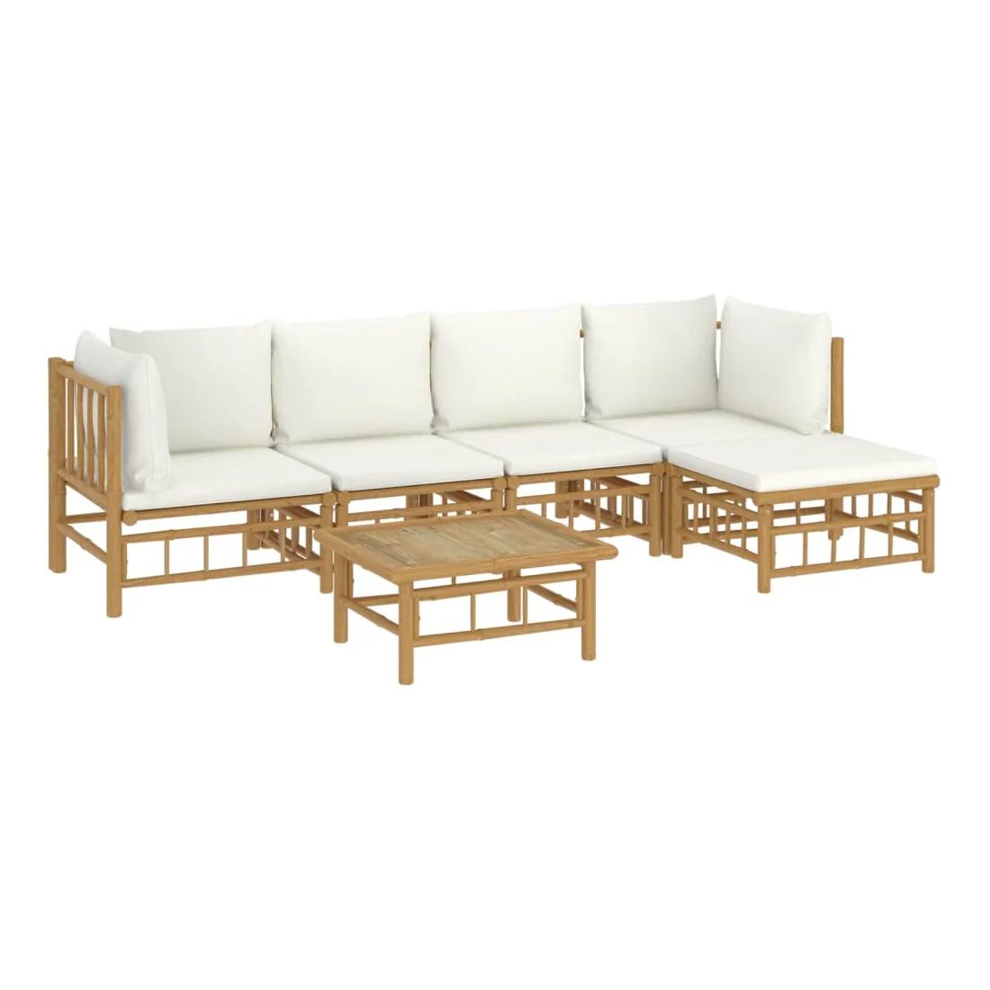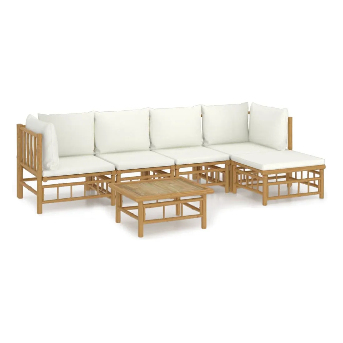 Salon de jardin 6 pcs avec coussins blanc crème bambou
