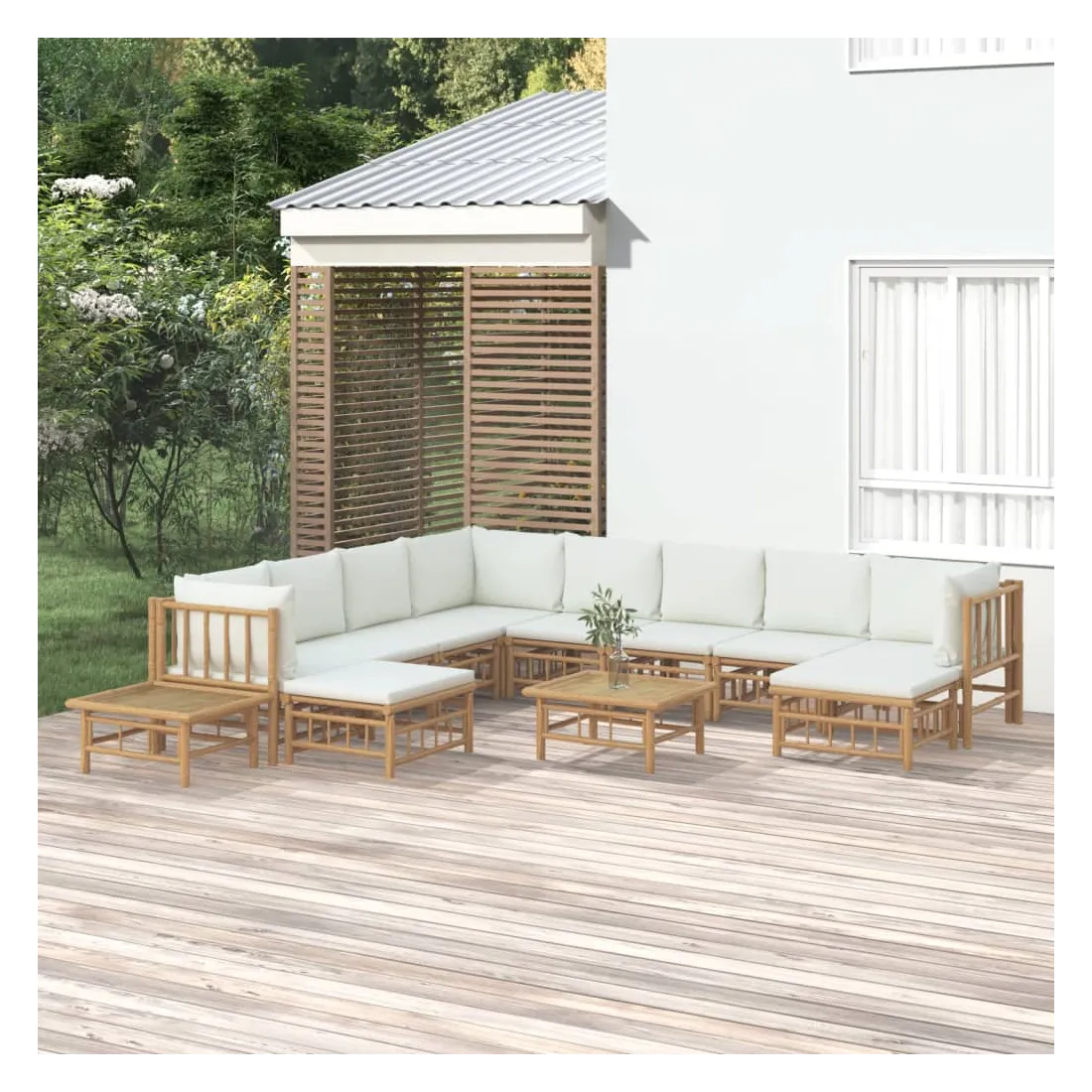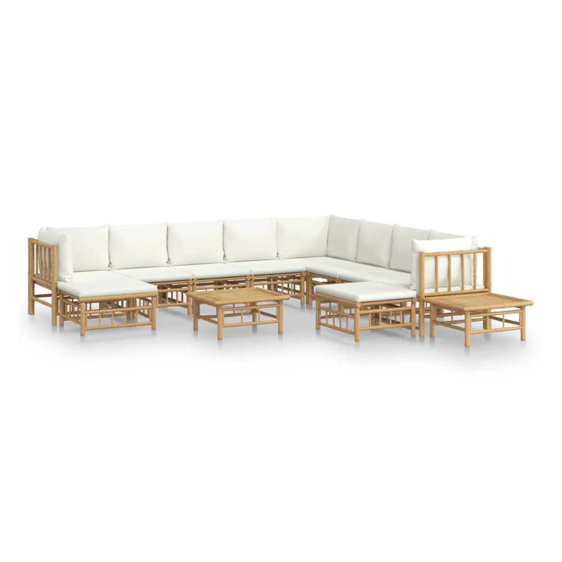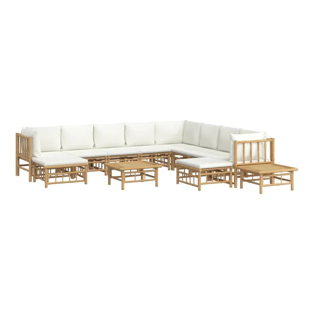 Salon de jardin 12 pcs avec coussins blanc crème bambou